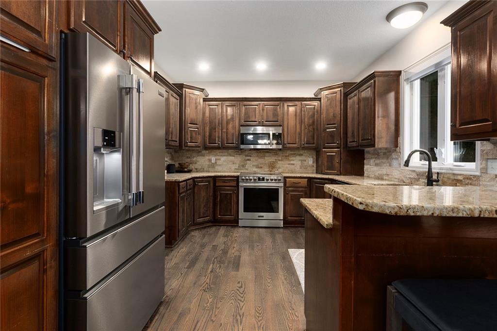 This stunning 2-story, custom-built home offers timeless charm and modern comfort in the highly desirable Summit Wood subdivision. From the moment you arrive, the brick front and curb appeal set the tone for what’s inside — a warm, beautifully maintained home that simply feels good. Located in the Lee’s Summit School District with a Kansas City address, this home offers the best of both worlds—great schools, a friendly neighborhood with a community pool, and convenient access to everything you need. Step through the grand entryway onto gorgeous hardwood floors that flow through the main level. The spacious eat-in kitchen opens to a quaint back deck—perfect for relaxing or entertaining. Upstairs, you’ll find a large master suite with a luxurious bathroom and generous closet space. The finished basement is built for entertaining, featuring a wet bar, inviting living area, and dedicated workout room. Additional highlights include a 3-car garage, a brand-new roof (2024), and newer kitchen appliances. Come experience the warmth, quality, and comfort this home has to offer.