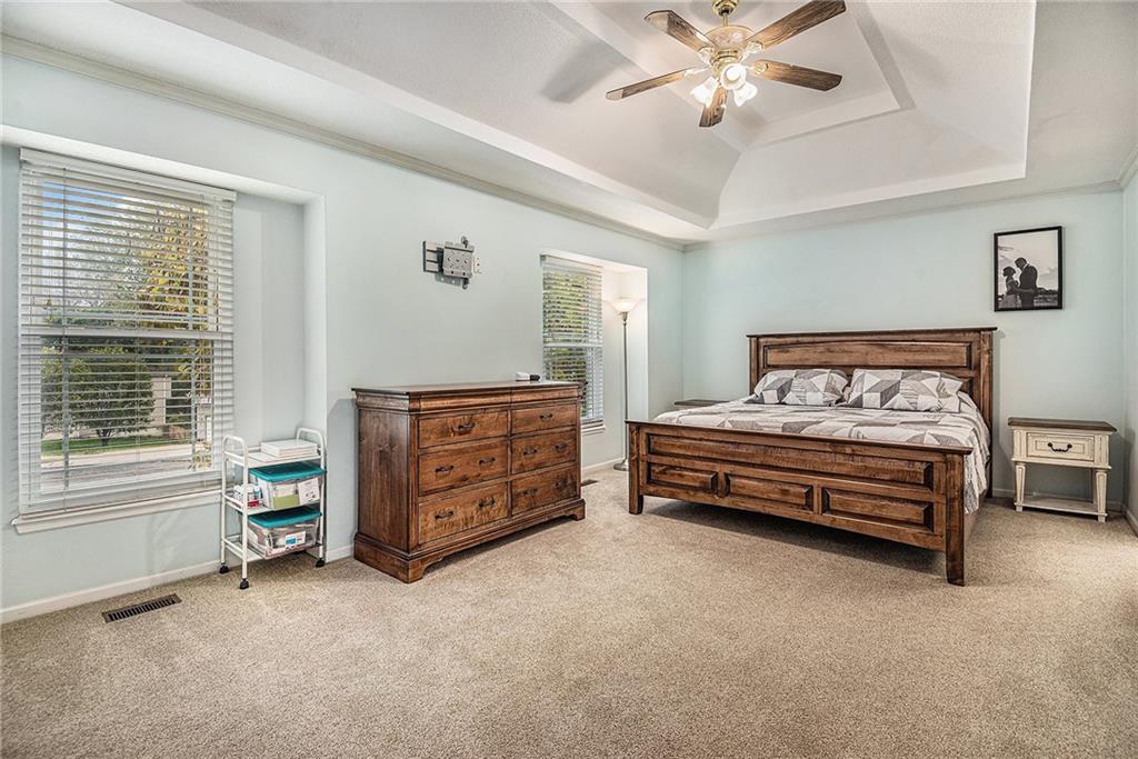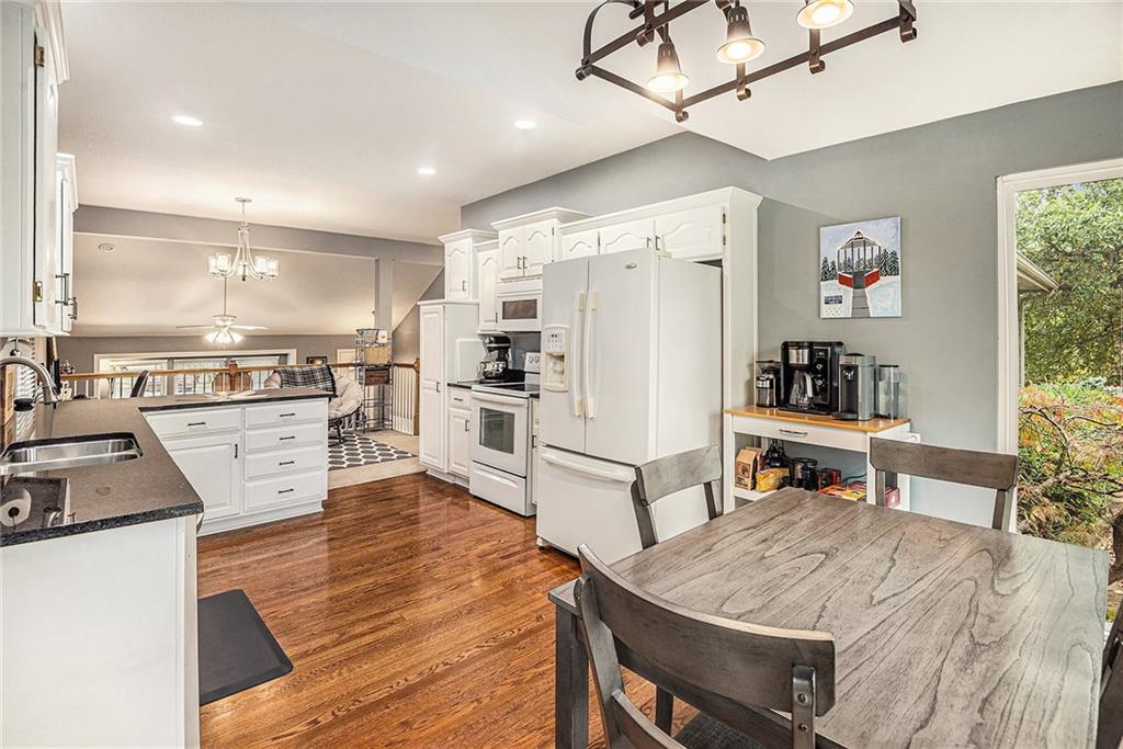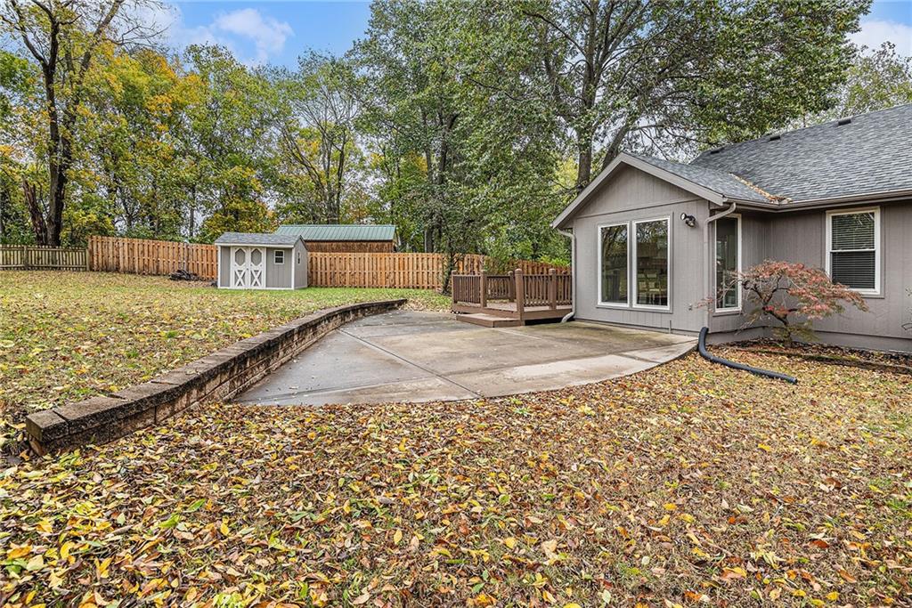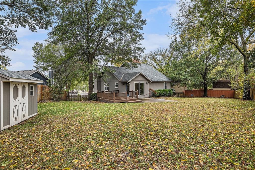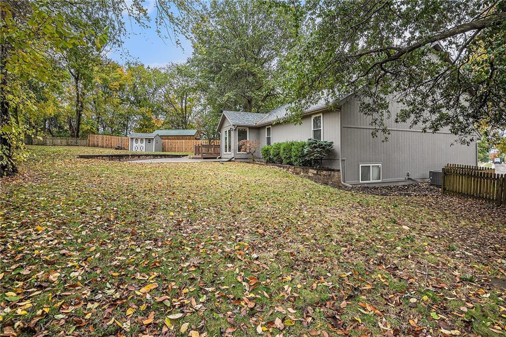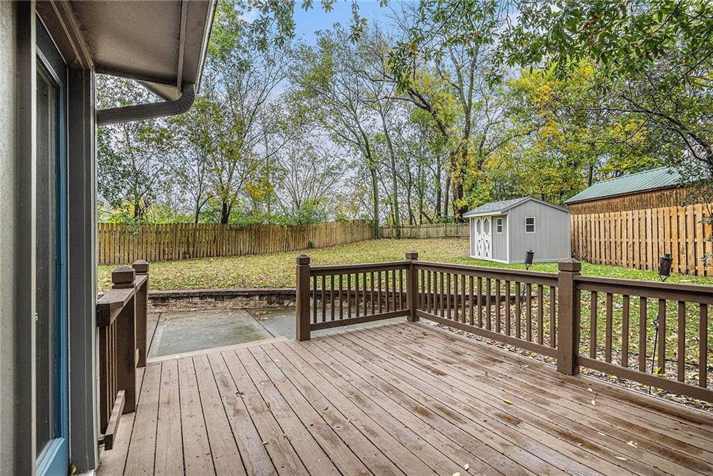 Move-in ready California split in Wildwood West Neighborhood. Home located on a quiet cul-de-sac. Greeted into an open floor plan. Living room with vaulted ceilings, fireplace, and fan. Walk up to a dining space open to kitchen with granite countertops, dishwasher, stove, microwave, refrigerator, and second dining spot. Kitchen walks out to a large fully fenced yard with deck area and shed for additional storage. 2 bedrooms and 2nd full bath finish out second level. Stairs lead to a third level with a secluded primary bedroom and en-suite. Two closets, one walk-in. Bathroom boasts dual vanities with quartz countertops, walk-in shower, and separate jacuzzi tub. Full basement area read to be finished into additional living space. Unfinished sub-basement ideal for storage. 2 car garage. Newer roof and carpet. All new interior & exterior paint. Park Hill School District. Close proximity to highways & Zona Rosa with shopping and eating spaces!