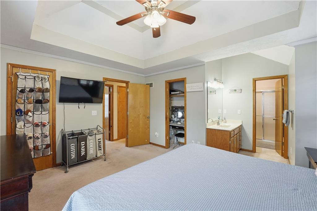 Welcome to the sought after Summerfield subdivision, This spacious and inviting Three bedroom,2 full Bath raised ranch, nestled in a peaceful, family friendly neighborhood. From the moment you walk in you'll be impressed by the vaulted ceilings, open concept living spaces, kitchen with loads of cabinets, bar seating and spacious dining area, perfect for cooking,entertaining or gathering with loved ones. The primary bedroom offers his and hers closet with a full bathroom. Enjoy the outdoors in your large backyard with new fencing and the expansive deck.