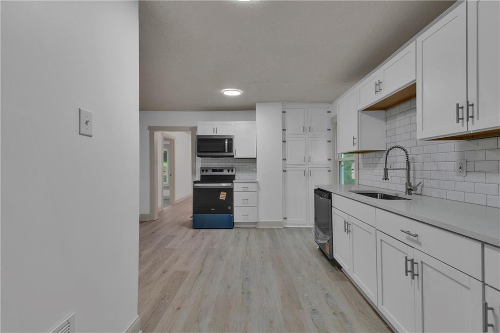Step inside this stunning fully renovated home and fall in love with its bright, open floor plan and thoughtful updates throughout. The spacious living room welcomes you with beautiful luxury vinyl plank flooring, flowing seamlessly into the dining area and wide-open kitchen. The kitchen is a true showstopper — featuring brand-new cabinetry, stainless steel appliances, quartz countertops, and a white subway tile backsplash with stylish gray grout for a modern touch. All four bedrooms offer comfort and style with soft, plush premium-pad carpeting, while fun LED lighting and fresh interior paint create a light, cheerful atmosphere throughout the home. Enjoy peace of mind with new windows, updated mechanicals, and quality craftsmanship from top to bottom. Outside, you’ll love the tree-lined lot, offering shade, privacy, and a welcoming setting to call home. With all major updates already done, this home is priced for ease of ownership — perfect for anyone looking for a modern, move-in-ready home. Adéntrate en esta casa completamente renovada y enamórate de su luminoso diseño de planta abierta y sus cuidadosas mejoras en cada rincón. La espaciosa sala de estar te da la bienvenida con un hermoso piso de vinilo de lujo, que se integra armoniosamente con el comedor y la amplia cocina. La cocina es realmente espectacular: cuenta con gabinetes nuevos, electrodomésticos de acero inoxidable, encimeras de cuarzo y un elegante salpicadero de azulejos blancos tipo metro con juntas grises para un toque moderno. Las cuatro habitaciones ofrecen comodidad y estilo con alfombras suaves y mullidas de alta calidad, mientras que la iluminación LED y la pintura interior fresca crean un ambiente luminoso y alegre en toda la casa. Disfruta de la tranquilidad que brindan las ventanas nuevas, las instalaciones actualizadas y la excelente calidad de los acabados. En el exterior, te encantará el terreno arbolado, que ofrece sombra, privacidad y un entorno acogedor para llamar hogar.