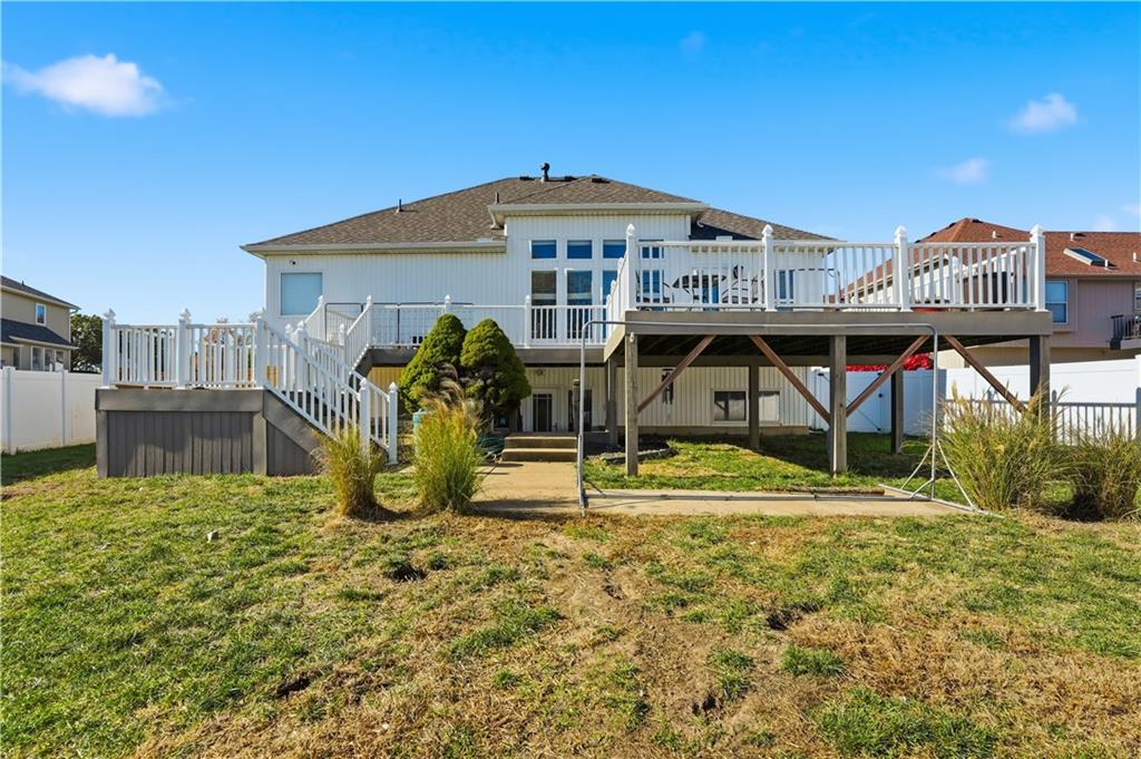 Welcome to easy living in Woodland Farms! This Reverse 1.5 story home sits on an oversized lot with no back neighbors—your own slice of peace and privacy. Inside, you’ll love the rich hardwood floors, soaring vaulted ceilings, and sunlight streaming through picture windows. Cozy up by the gas fireplace or gather in the ultra-functional kitchen—perfect for everyday living or casual entertaining. Plus, the formal dining room easily doubles as an office or play room. The primary suite feels just like home with its spacious bedroom, roomy walk-in closet, jetted soaking tub, and separate shower. A large secondary bedroom, full bath, laundry room, and a generous 3-car garage round out the convenient main level. Downstairs, enjoy a walk-out family room with newly refinished epoxy floors, two additional bedrooms, a full bath, and an unbelievable amount of storage space. Step outside to your huge composite deck overlooking a beautifully fenced, private backyard—ideal for morning coffee, evening BBQs, or just soaking up the quiet. With a brand-new roof, nearby top-rated schools, and a prime Shawnee location close to shopping, dining, and highways—life here truly couldn’t be easier.