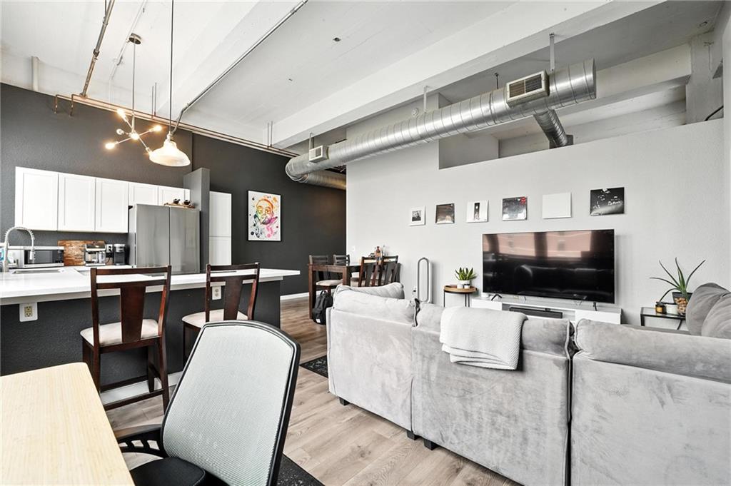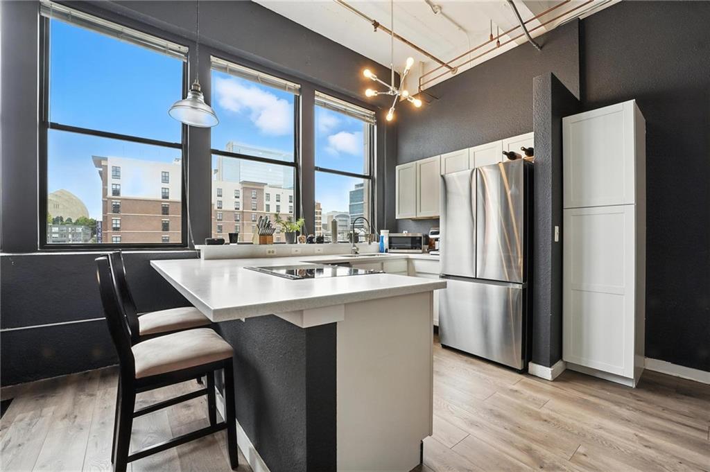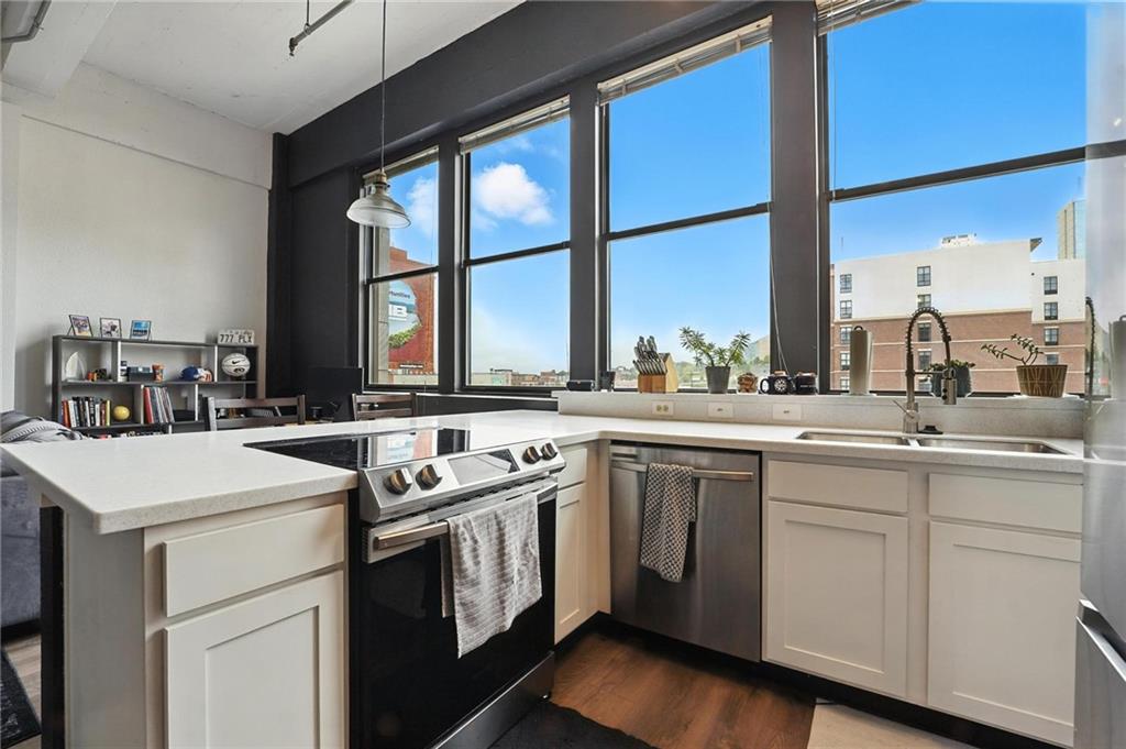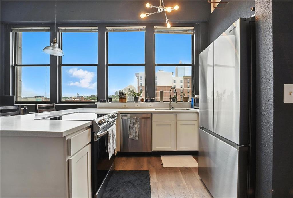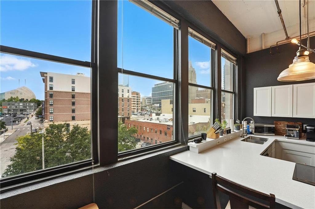 Experience the vibrant energy of the Crossroads in this stunning southeastern-light-filled corner unit at Campbell Lofts! This exceptional one bedroom floor plan offers spacious open concept living. Located in the heart of the Crossroads Art District, you'll be steps from the Power & Light District, Cosentino's Market, and the 16th & Main Streetcar stop, providing effortless access to all of Kansas City. This meticulously maintained 4th-floor unit boasts updates, including newer hardwood flooring, updated kitchen with newer stainless steel appliances (all stay), custom cabinetry, updated bathroom, and newer HVAC! In unit washer and dryer in entryway! Enjoy building amenities with a full gym, entryway with sitting area and gas fireplace, and your own personal wine locker! For parking, HOA offers 2 "timed" spaces for this unit in lot catty-corner from Campbell Lofts. Owner can park free of charge Monday-Friday from 5:30PM-7:45AM, and on weekends. If other times are required, there is option to lease spaces for $100/month through the HOA. Low monthly HOA dues enhance the appeal of this exceptional urban retreat. Schedule your private showing today!