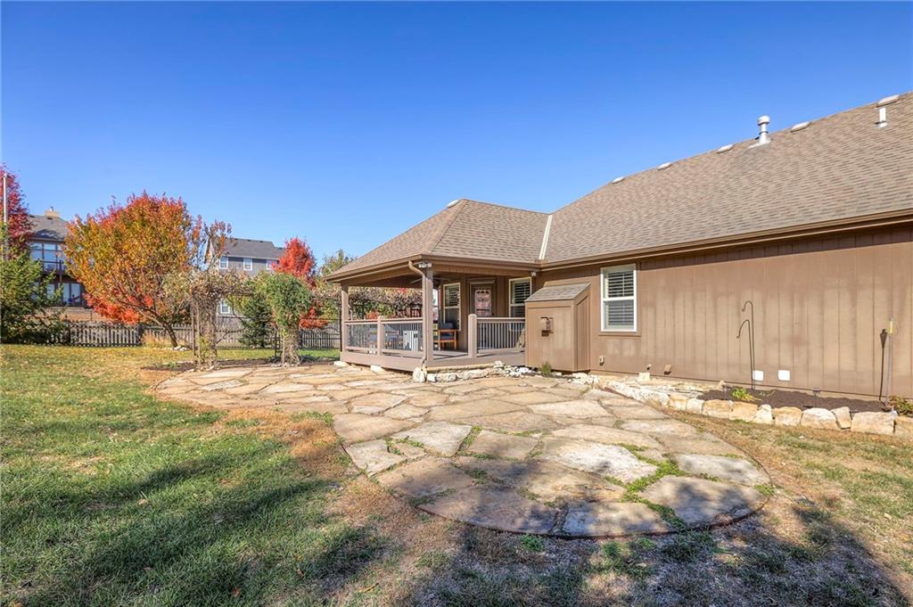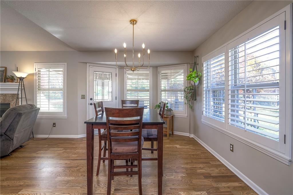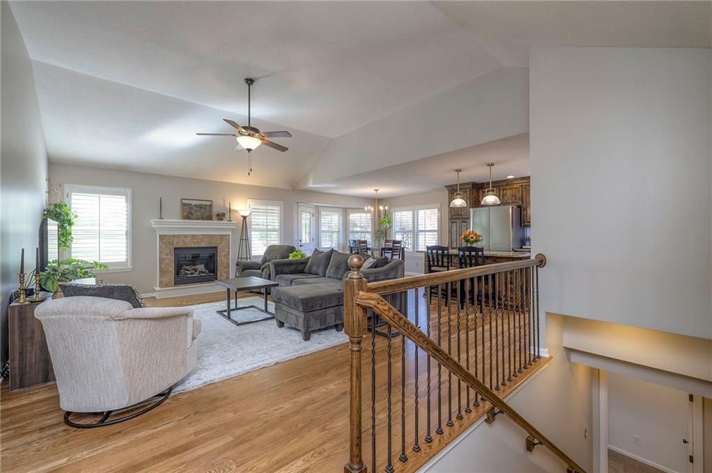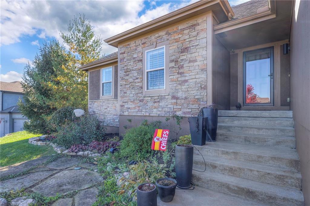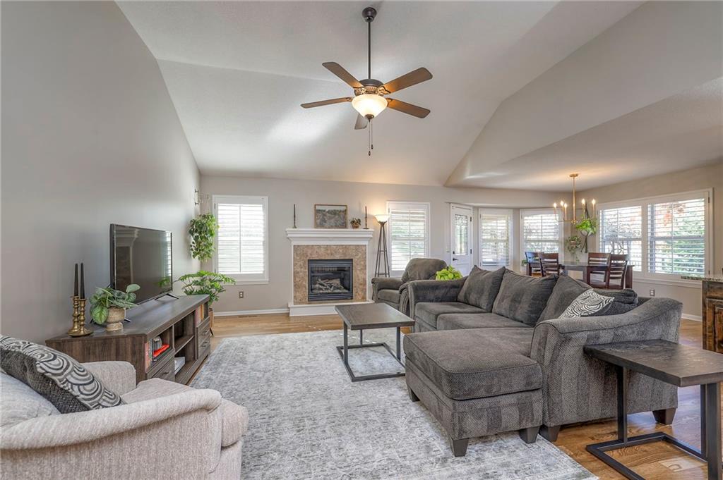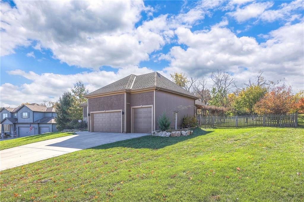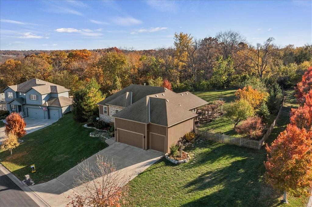Lovely ranch home perfectly situated on an oversized .54-acre corner lot in Shawnee! Step inside to discover beautifully refinished hardwood floors throughout the main level, fresh interior paint, and new light fixtures that make the home feel bright and updated. The open layout seamlessly connects the living room, kitchen, and dining area for effortless everyday living. The living room features a vaulted ceiling, plantation shutters, a cozy fireplace, and wonderful natural light, creating a warm and peaceful space to relax. The kitchen is equally impressive, featuring granite countertops, stainless steel appliances, a large island, and ample pantry space—perfect for both cooking and entertaining. Step outside to a covered deck overlooking your large, fenced backyard, which backs onto a private, treed area. Whether you’re hosting gatherings or enjoying your morning coffee, this outdoor setting offers beauty and tranquility. The primary suite features a vaulted ceiling, a walk-in closet, and an en-suite bath with a double vanity, shower, and a large soaking tub. Two additional main-level bedrooms include hardwood floors and generous closet space. The finished basement expands your living space with a spacious rec room ideal for movie nights, watch parties, or game days. A fourth bedroom with a huge walk-in closet and updated full bath, plus a bonus office or workout room, offers even more flexibility. There’s also abundant storage or workshop space for all your extras. Laundry hookups are available on both the main level and in the basement for added convenience. The three-car garage features tall ceilings and ample space, even accommodating a full-size truck. Fantastic location close to Shawnee Mission Parkway amenities, City Center’s new development at 87th Street, and zoned for the De Soto School District, including Mill Valley High School. Enjoy the tree-filled scenery that makes this part of Shawnee so special. Make this beautifully updated ranch home yours