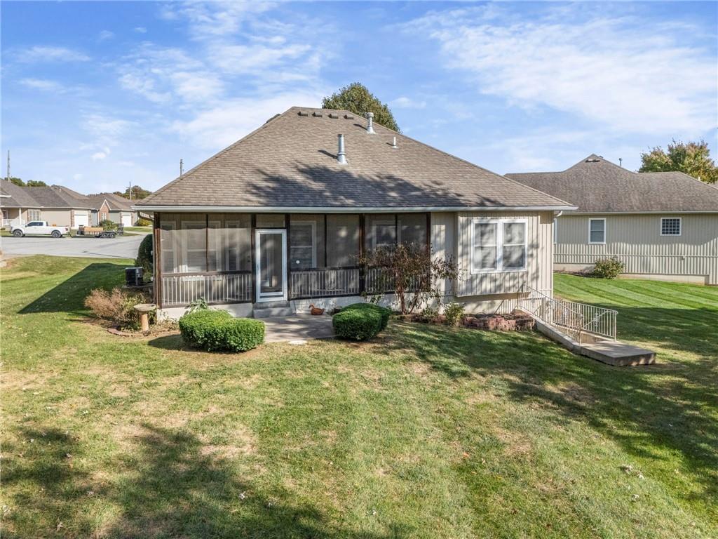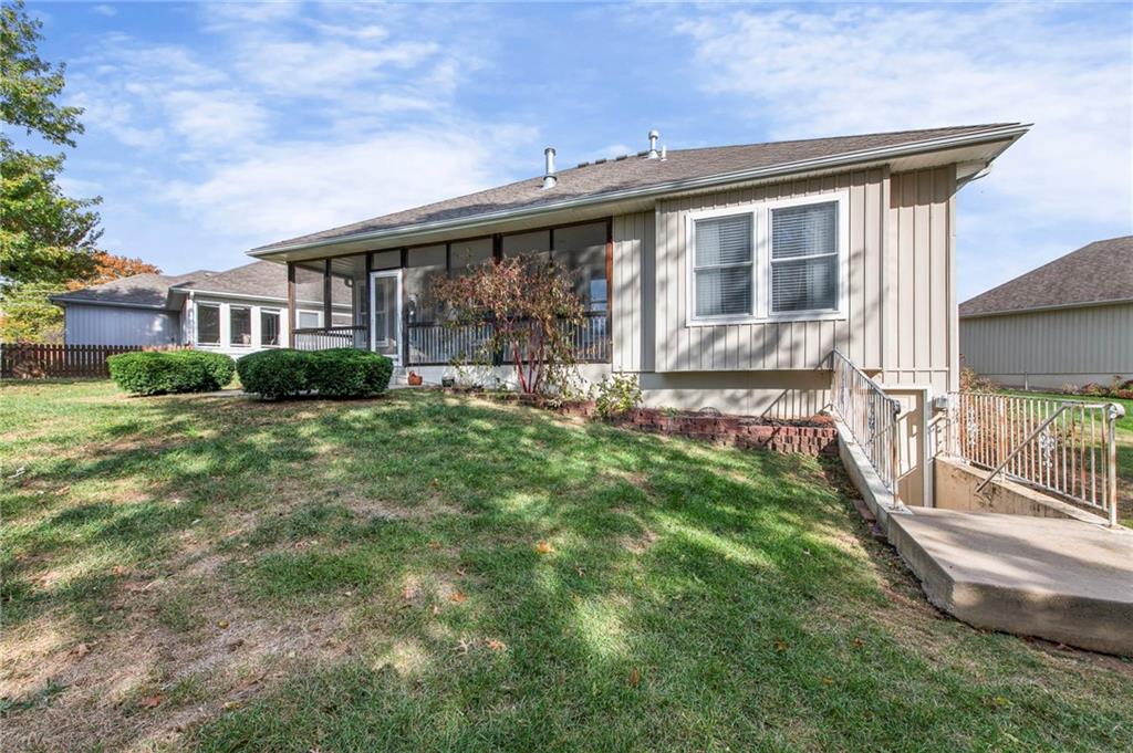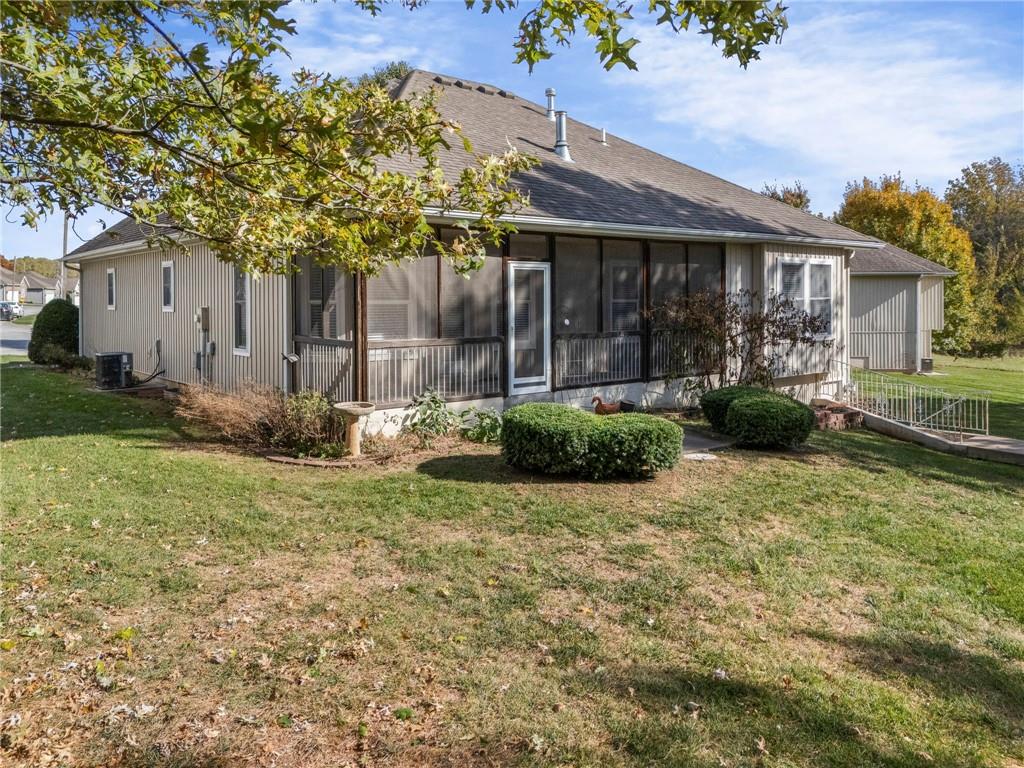 WOW!! This AMAZING Maintenance Provided home has lots of UPGRADES and FEATURES you want to see * TONS OF BEAUTIFUL HARDWOOD FLOORS HAVE BEEN ADDED THROUGHOUT THE GREAT ROOM, KITCHEN, BREAKFAST AND OFFICE AREA * SEMI-PRIVATE back yard with lots of trees / Maintenance Free vinyl siding / Brock accents on the front facade / MAIN FLOOR LAUNDRY right off the kitchen / APPLIANCES ARE NEWER and have been UPGRADED / STUNNING GRANITE kitchen counter tops accent the kitchen to offer a much more rich feel / SCREENED IN COVERED PATIO is perfect for enjoying the spring, summer and fall weather / 3 (three) 3 BUILT IN BOOK CASES IN THE GREAT ROOM, OFFICE AND ENTER TO PRIMARY BEDROOM FOR ALL OF THE FAMILIES PICTURES / Linen and main floor public bathroom lead into Bedroom 2 just of the Office and Entry / LOWER LEVEL IS PLUMBED FOR A FULL BATH and KITCHEN if you need more space (Contractor available and has plan for it) A WALK-UP WALK OUT BASEMENT affords you the opportunity to almost a separate living quarters down OR more than enough Storage Space for ALL THE CHRISTMAS TREES :-) This community is ONE OF THE BEST IN ALL of the city for MAINTENANCE PROVIDED LIVING AND SUPER AFFORDABLE MONTHLY FOR LAWN, SNOW AND TRASH SERVICES THAT ARE INCLUDED * GREAT VALUE and even community MONTHLY HOA $125 (55 and OLDER COMMUNITY)