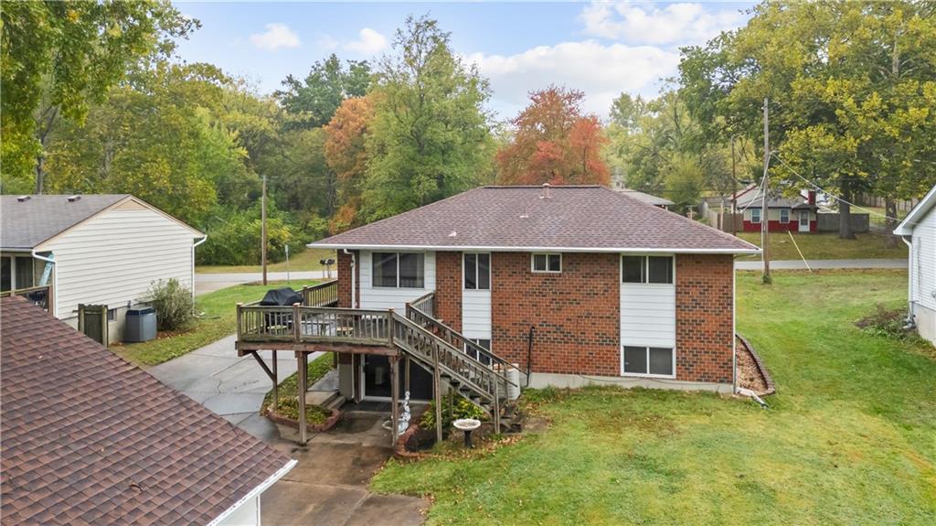 Pride of ownership shows in this all-brick split-entry home on a spacious half-acre lot in the heart of North Kansas City. With 4 bedrooms, 2 baths, and over 1,460 sq ft, this home has been well cared for and is ready for new owners to make it their own. The main level features hardwood floors, an updated bathroom with walk-in shower, and a bright, open living space. Enjoy stainless steel appliances in the kitchen and a large deck overlooking the peaceful backyard. The finished walkout basement adds extra living space with a kitchenette—perfect for guests, hobbies, or entertaining. Plus, an oversized detached 2-car garage with workshop area provides plenty of room for projects and storage. Great home, great lot, and a highly sought-after location—just bring your vision to make it your own! Located in the award-winning North Kansas City School District, this well-maintained home is ready for new owners to bring their vision and make it their own. Bidding Ends: Thursday, November 20th at 1 pm