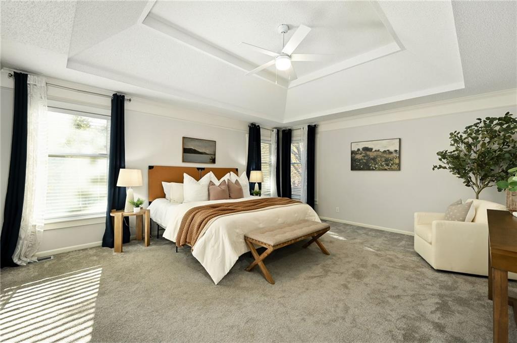 This beautifully updated 4-bedroom, 2.5-bath home blends timeless design with modern comfort. The main level offers an ideal layout with a spacious kitchen that opens to a warm hearth room perfect for everyday living. You'll also love the laundry room on the main level. Upstairs, the primary suite features a stunningly renovated bathroom and a thoughtfully designed walk-in closet. The additional bedrooms are spacious and versatile, ideal for family, guests, or a home office. The finished basement provides abundant flex space, while fresh exterior paint enhances the home’s curb appeal. Perfectly situated in the heart of Olathe’s Briarwood neighborhood—close to parks, schools, and local amenities—this home is move-in ready and beautifully refined.