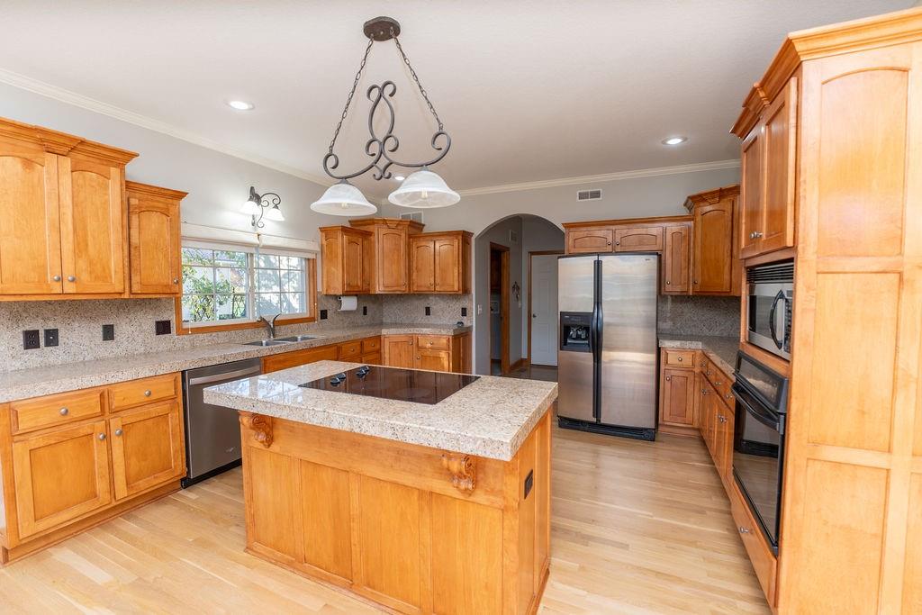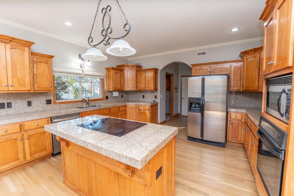 Spacious Ranch Retreat on a Quiet Street Welcome to this stunning large ranch-style home, perfectly situated on a peaceful street. Designed for comfort and style, this residence offers abundant natural light through floor-to-ceiling windows that showcase the beautiful surroundings. Step inside to find gleaming, recently refinished hardwood floors flowing throughout the open living spaces. The updated master bathroom provides a spa-like escape with modern finishes and thoughtful design. Enjoy the convenience of main-floor laundry, and rest easy knowing the home features a brand-new roof for years of worry-free living. With its bright, airy layout and inviting atmosphere, this home perfectly blends contemporary updates with classic charm — a rare find in today’s market.
