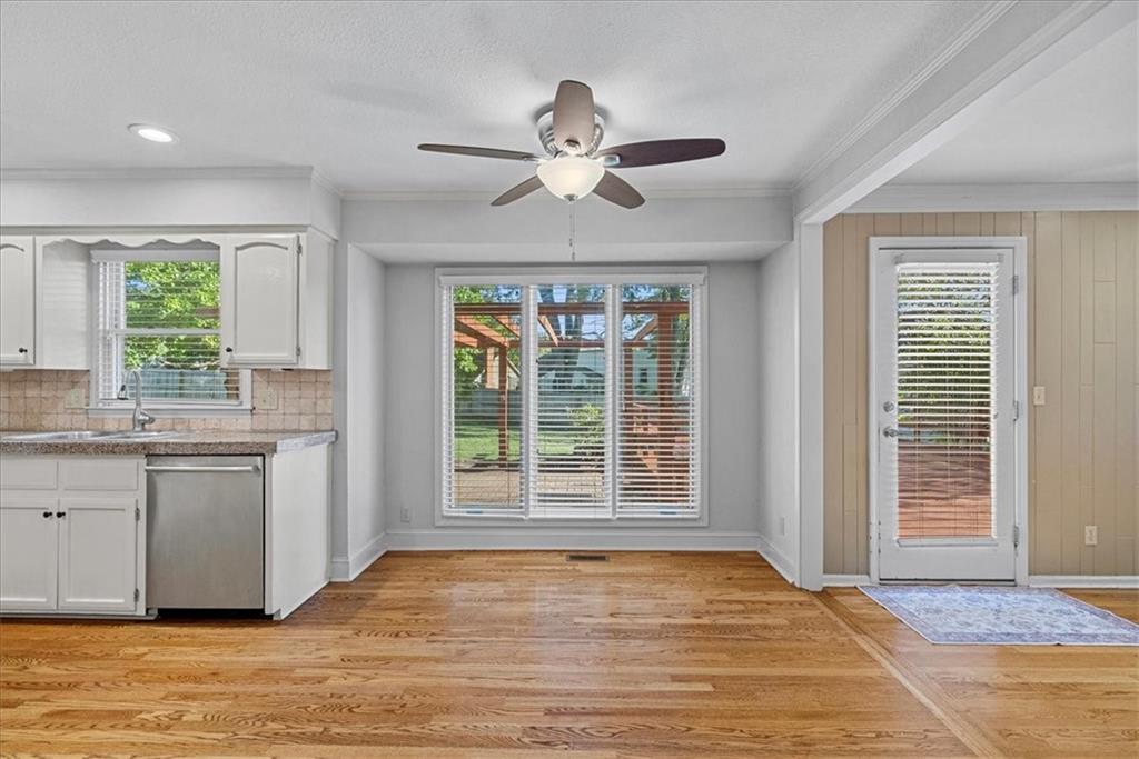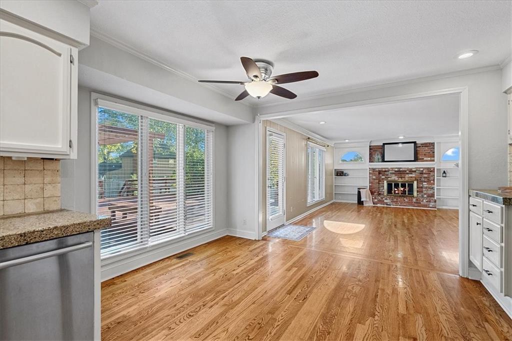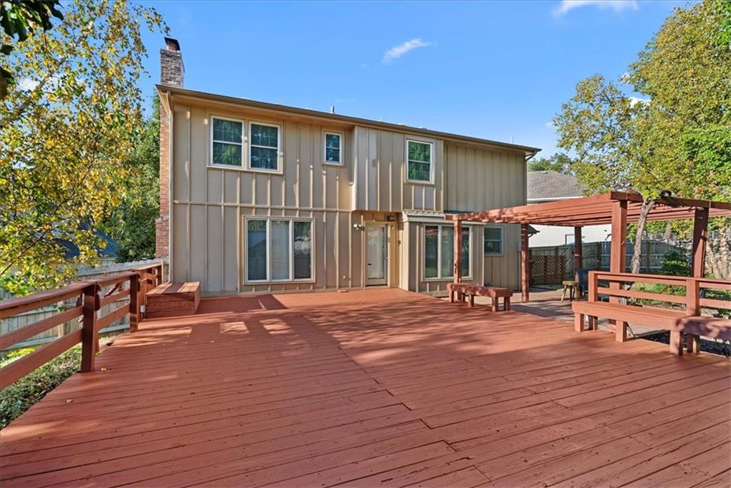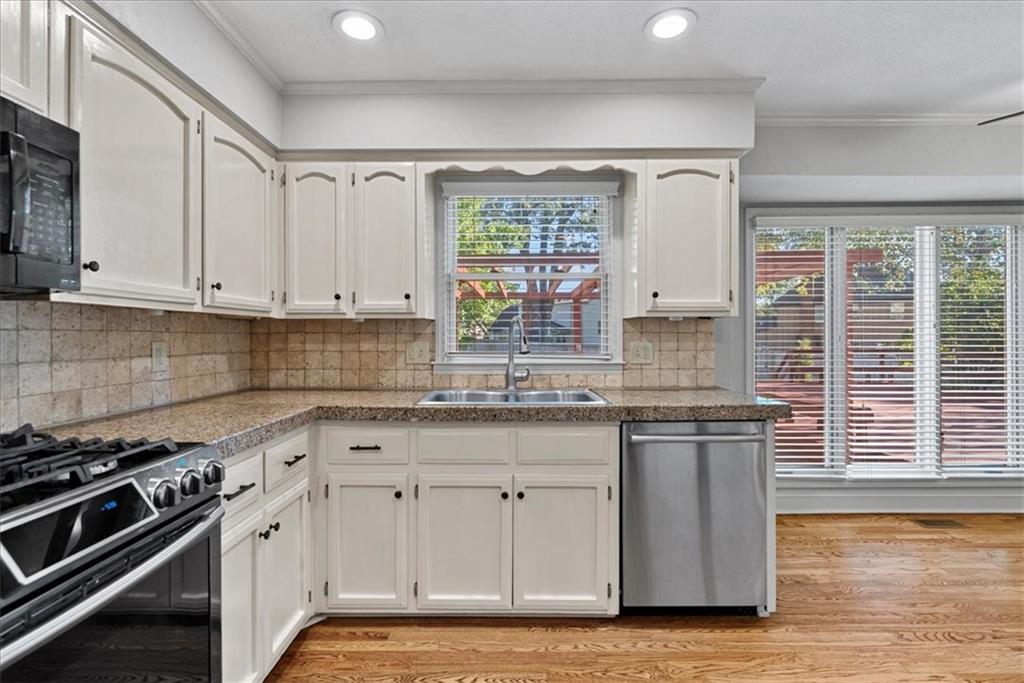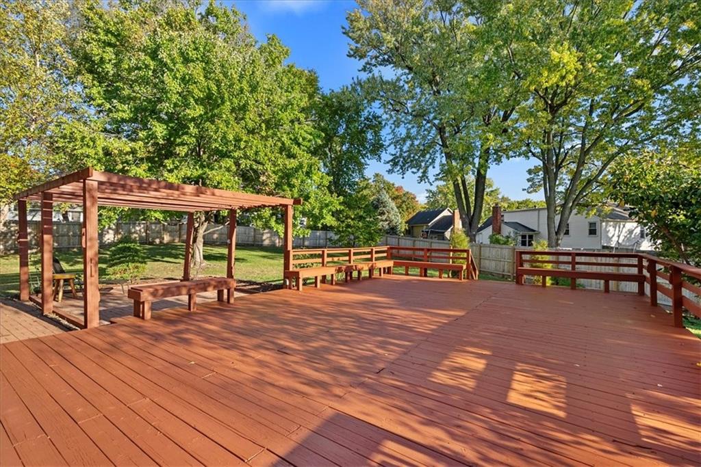 Gorgeous two-story, 4-bedroom home in the Shawnee Mission School District!! Step inside and fall in love with all this home has to offer. The open floor plan is perfect for many occasions. All wood floor and tile on the main floor. The front room is suitable for a living room or an office with ample space. Floor-to-ceiling windows adorn the back (south)of the home, offering ample natural light. The kitchen offers many cabinets, Storage Galore! Beautiful travertine backsplash, FRIDGE STAYS! Large family room with floor-to-ceiling windows, a convenient gas fireplace surrounded in stacked brick and built-ins with half-round windows and hardwood floors just feels like home. Upstairs, you have 4 great-sized bedrooms. The primary bedroom has a vaulted ceiling. The primary en suite has been tastefully updated, it's a MUST SEE. The primary closet just goes on forever, it has so much space, its a dream! Fully fenced (replaced in May 2024, security height) back yard with a giant deck, a brick patio and pergola (deck and pergola stained in October 2025). Private and beautifully landscaped. This yard is flat! Come take a walk for yourself. Fabulous cul-de-sac location is close to shopping(Oak PArk Mall, Target, etc) restaurants, and 435 and 69 highway access. This cul-de-sac has very little traffic! It's tucked away nicely. Come to our Open House and see the beauty that is 11731 w 99th Terrace!!