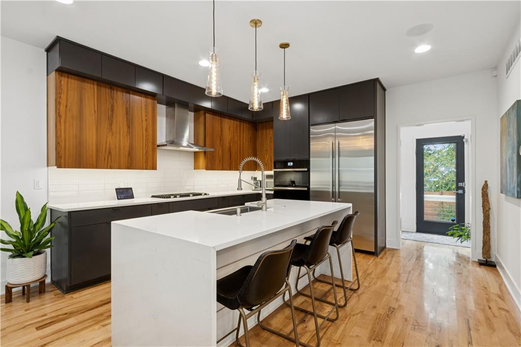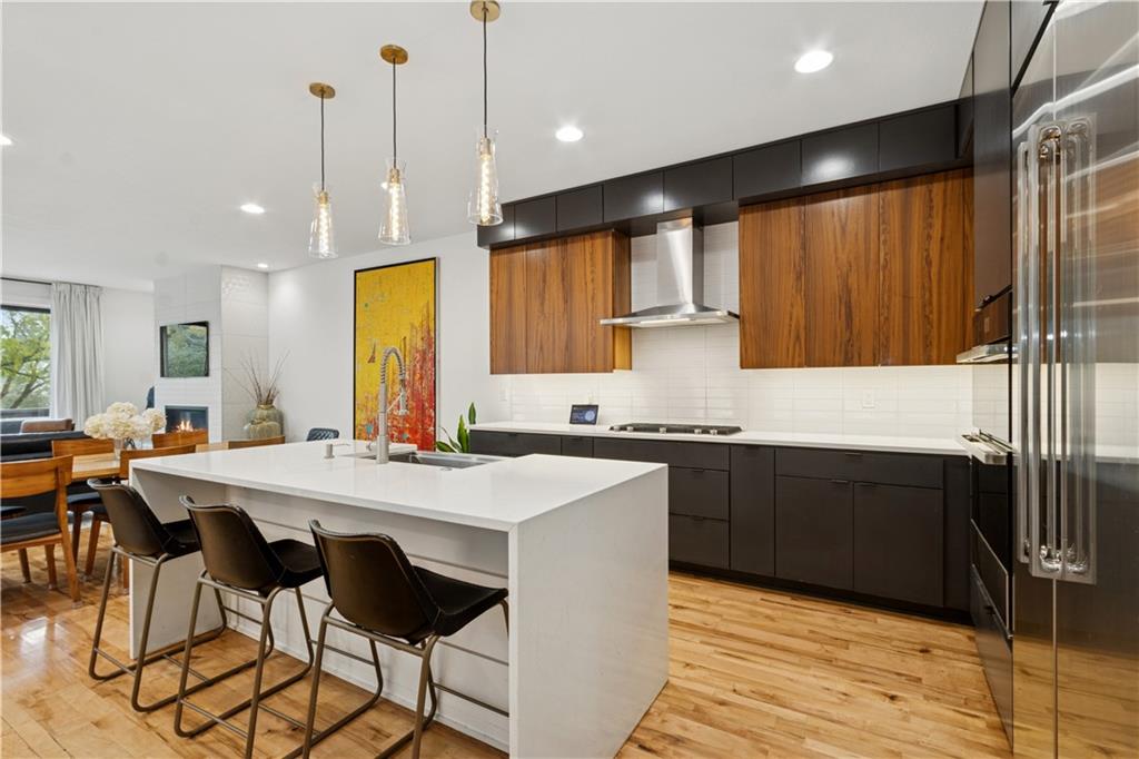 Modern luxury living in this stunning contemporary 4 BR, 4 full bath home in the sought after Westwood neighborhood. This custom-built home by Suma Design is tastefully and thoughtfully designed with all its decor perfectly appointed! The functional floor plan makes for perfect everyday living yet elegant in its feel. From the entryway with its high ceilings, to the main living area boasting maple wood floors, double sliding doors to the front allowing for light, and open concept to the home's kitchen and dining areas. The spacious, impressive kitchen is complete with quartz countertops, custom cabinetry, center island, convection oven and microwave making this a cook's delight! A bedroom with full bath is on each floor - ideal for using one as an office, art space, or true 4th bedroom. Primary bedroom with ensuite "killer" bathroom has huge walk-in closet, ceiling fan and modern decor. Primary bath with double vanity, modern design and large walk-in shower. * There are no items overlooked in this home, some of its great features include upgraded lighting (Control 4 Home Automation), Linear Gas Fireplace, designated bar area, Zoned Heating and A/C, custom window treatments, and sprinkler system. And then to top it all off, DON'T OVERLOOK the heated, saltwater inground pool with wood fencing and landscaping all around the perimeter. * The home is situated in the Westwood Park area with close proximity to Woodside Health Club, shopping, restaurants, and Westwood Park.