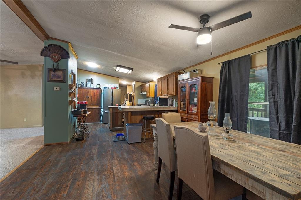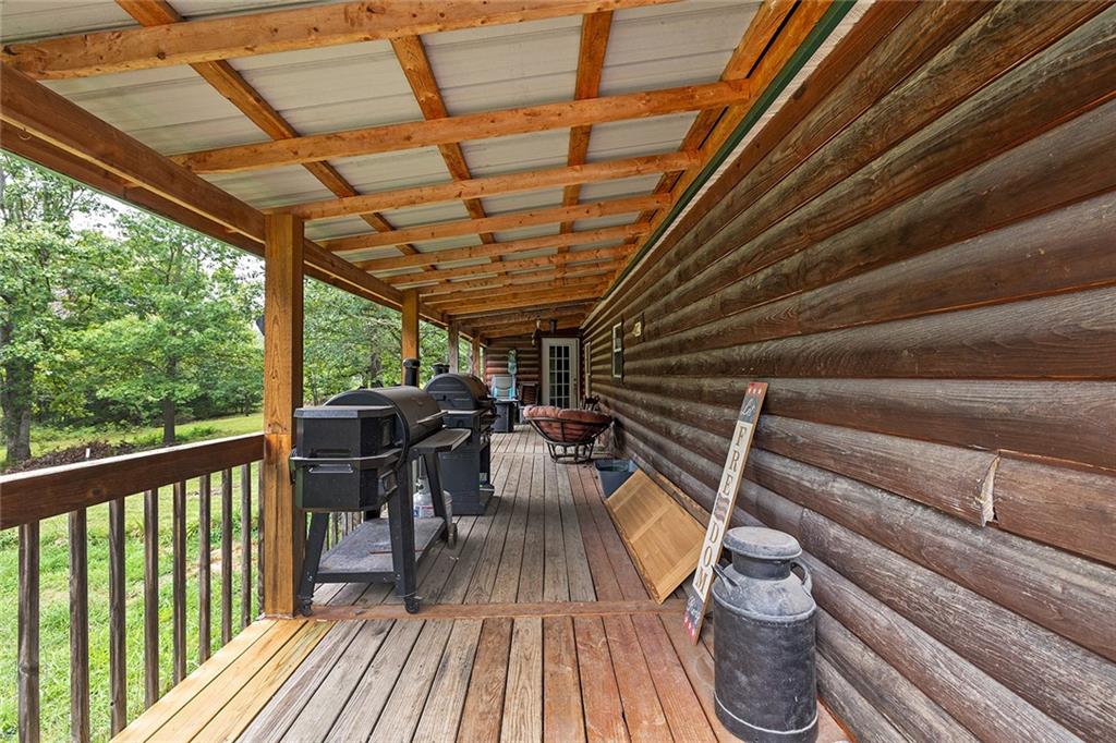 Welcome to your own private retreat on 20 beautiful acres! This log-sided manufactured home is nestled among rolling hills and mature timber. The land is mostly wooded, with a seasonal creek that runs at the bottom of the first hill — flowing during heavy rains. The property is partially fenced with barb wire along the sides and back. Step inside to find 3 spacious bedrooms and 2 full bathrooms. A formal living room greets you at the front of the home, leading into an open-concept kitchen and cozy family room. Home has newer vinyl plank tile. The pellet stove adds warmth and charm while helping reduce propane costs during the colder months. There is a central all-in-one electric heating and cooling system as well.. The home also features a durable metal roof for long-term peace of mind. Enjoy the outdoors from the large back deck, part of which is enclosed and currently used as a small workshop. Additional features include a 30-amp RV hookup, a second septic system near the campsite area, and a blue connex container with its own 200-amp electrical service—perfect for storage or future expansion. Whether you're looking for a full-time residence, weekend getaway, or hunting basecamp, this property has endless potential. This property qualifies for free deer tags every year.