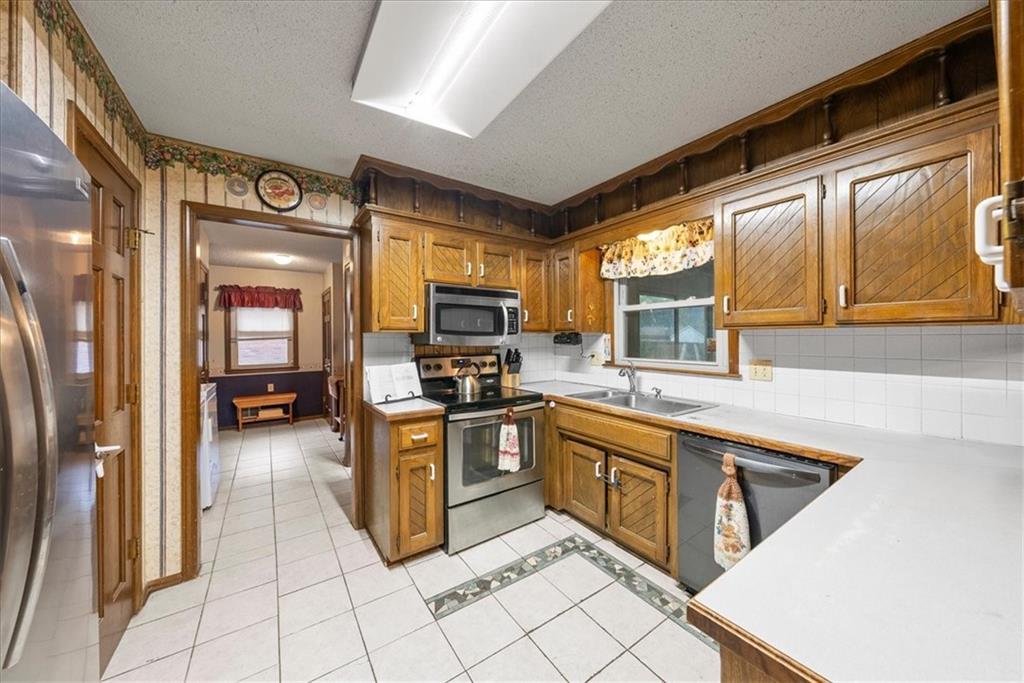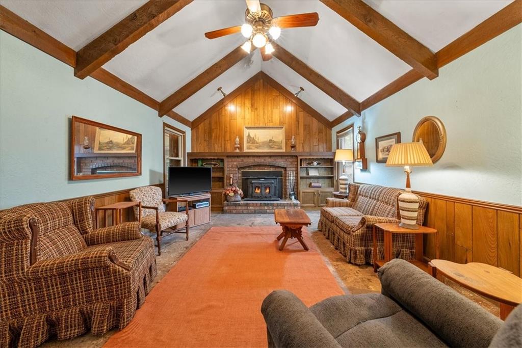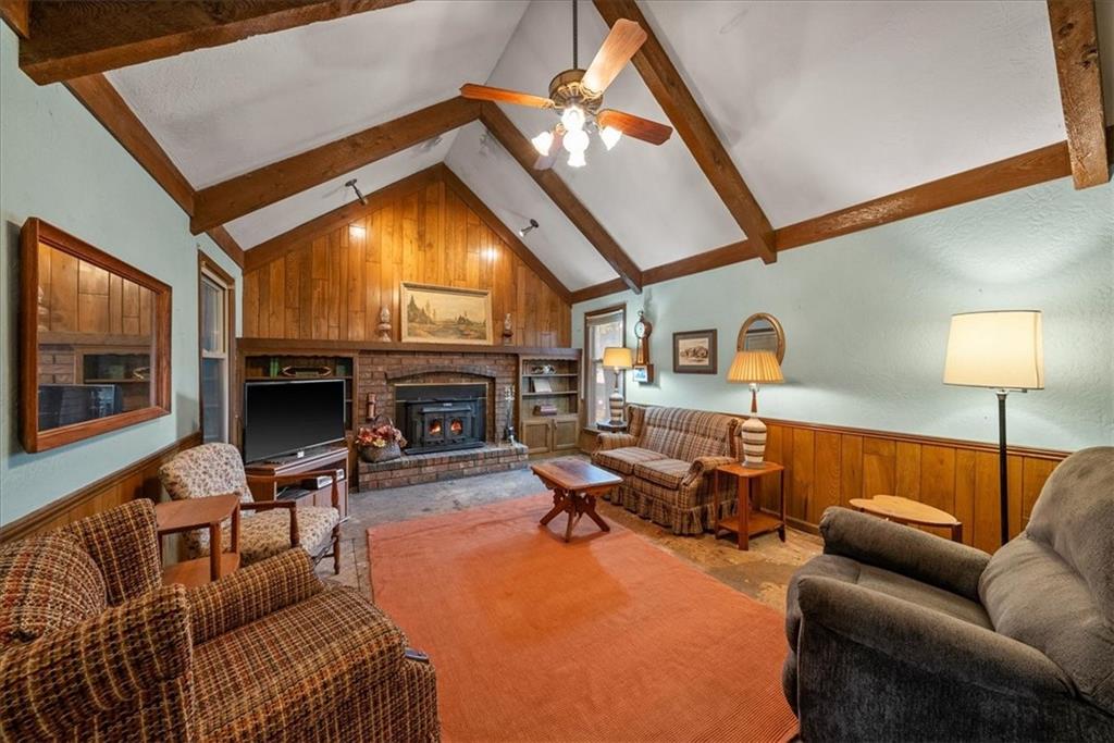 Welcome to this beautiful ranch home offering main level living at its finest, where comfort meets style in perfect harmony. The living room invites you in with its impressive cathedral ceiling, exposed wooden beams and fireplace, creating a charming and character-filled space. The sunroom off of the kitchen is a delightful spot, filled with natural light, ideal for relaxing or enjoying the view of the outdoors. The primary bedroom boasts a vaulted ceiling and full en suite bathroom. Downstairs, the walkup basement reveals an expansive workshop, a dream come true for hobbyists or those needing extra space for projects and storage. This versatile area offers endless possibilities for personalization and use. The outdoor space, set on a sizable lot, is perfect for gardening, or simply unwinding in your private sanctuary. Whether it's hosting friends for a barbecue or having a quiet evening under the stars, this yard is ready for your enjoyment.