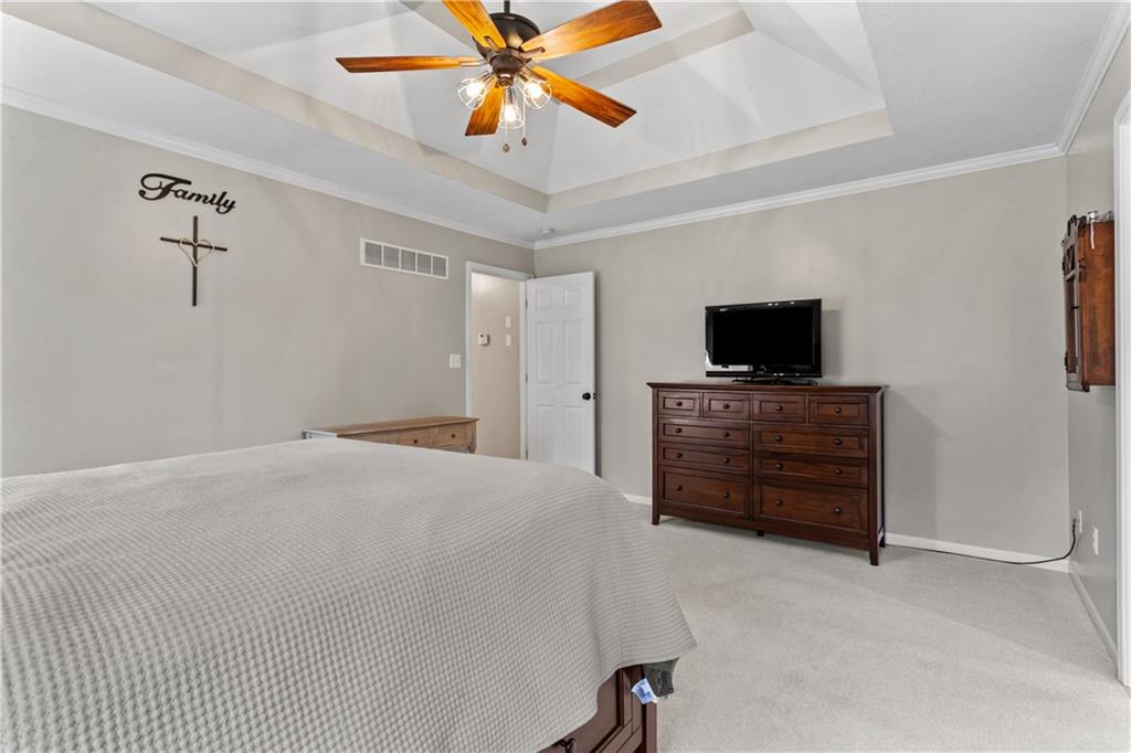 Beautifully maintained ranch home that perfectly blends timeless comfort with stylish updates. This home is SPACIOUS and features a modern kitchen with marble countertops, an island, a new gas stove, and plenty of space for cooking and entertaining. The adjoining hearth room and living room create a warm, inviting flow—perfect for gatherings or cozy nights in. The primary suite is a true retreat with a gorgeous, newly renovated bathroom showcasing today’s modern finishes and thoughtful design. Nearly all windows are just one year old, and the new hot water heater ensures peace of mind for years to come. Enjoy the outdoors year-round on the covered deck and patio, overlooking a big, flat, fenced backyard—ideal for pets, play, or gardening in the raised beds. Downstairs, the huge, finished basement offers endless possibilities: a bonus room that can serve as a non-conforming bedroom, a wet bar with sink and refrigerator, plus tons of finished and unfinished storage for all your needs. With its neutral décor, spacious layout, and modern conveniences, this home is move-in ready and waiting for you to make it your own.