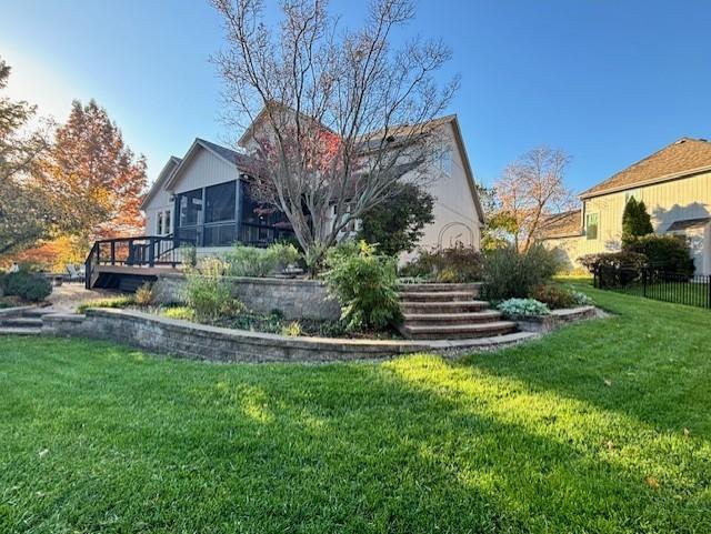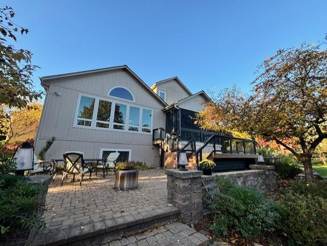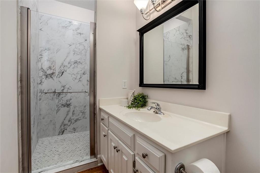 Gather for the holidays in this beautifully renovated home in western Shawnee. Ideal for entertaining, the living room flows into the hearth room with vaulted ceilings, cozy fireplace and large windows to watch the seasons change . The kitchen centers the area with a large island, double oven, and a hidden pantry. Move outside to the screened-in porch, deck and brick patio to enjoy a bonfire. The outdoors area is lined with landscaping, retaining wall paths, and trees to create a private retreat. Back inside, invited guests can stay in the main floor bedroom with full bath. Upstairs, the primary suite features dual closets, and primary bathroom suite; one bedroom with a private bathroom; and two additional bedrooms connect with a Jack and Jill bathroom. The finished lower level is open for possibilities with a large room ideal for an in-home theatre and a secondary room with daylight windows which could be set up for a game room with a pool table or exercise space. Plenty of room to add on with 1,200 square feet of storage space. Main floor includes a large office with storage (or another bedroom) and formal dining space and a large laundry/mud room with extra shelves and storage cabinets. The 3-car garage includes an extended area for long vehicles, bikes, or tools. Recent renovations include added hardwood floors, carpet throughout, bathroom and laundry room tile; freshly painted cabinets, walls, and trim; new 8ft garage doors; updated landscaping; and new roof. Just minutes from De Soto school district’s award-winning schools - Mill Valley High School, local dining, and highway access. Schedule your private tour today and experience the ultimate home for entertaining and everyday living.