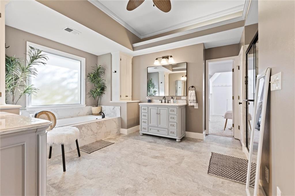 This homeowners job transfer is your lucky day. Purchased only a year and a half ago, the kitchen received a beautiful REMODEL and the PRIMARY BATHROOM was GUTTED and renovated as well, leaving it to be summed up with 1 word, STUNNING! New plush carpet was just installed as well as all new interior paint and light fixtures. This sought after 2 story floorplan in Lakewood, has a spacious living room w fireplace on the main w tons of windows, home office w French Doors, hearth room just off the fully renovated kitchen, a formal dining room, and main level laundry room! Heading upstairs the Primary Bedroom has an additional room some might use as an office or nursery. As you walk in your newly remodeled bathroom, you'll find high-end finishes, including a walk-in shower w glass doors, brand new tub, and double vanities for a spa-like experience. You'll love the spacious walk-in closet that was just painted as well. If you're looking for room to spread out, then don't miss this massive basement! Huge Rec Room w wet bar, large 5th Non-Conforming Bedroom w walk-in closet. WALKOUT to your covered patio perfect for a Hot Tub or relaxing w a book! The backyard is almost a half acre, fenced w trees providing shade and privacy. Lakewood has a ton of amenities being a perfect match whether you're single or a have a growing family! Check out their website w all the AMENTITIES at https://lpoa.com/.
