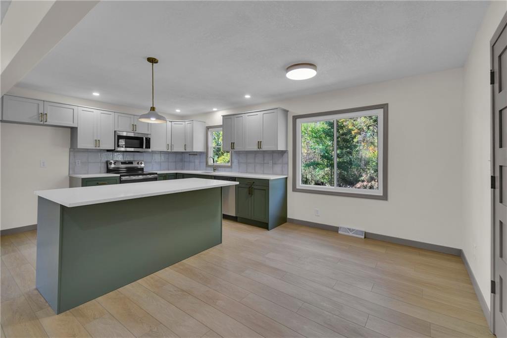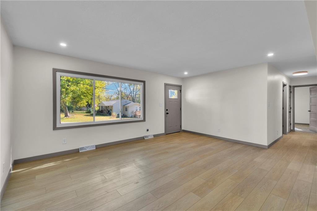 Completely renovated 4-bed, 2-bath home on a 0.71-acre lot in Pleasant Valley. This 2025 update blends quality materials with modern design across 2,267 sq ft of finished space. Main level features 1,144 sq ft with new cabinetry, quartz countertops, recessed LED lighting, and durable LVP flooring. Finished walk-out basement adds 1,123 sq ft including a 4th bedroom and flex living area with natural light. Both attached and detached garages offer ample parking and storage. Updates include new windows and appliances (2025). Large 0.71-acre lot offers room for future outdoor projects or garden space. Easy access to I-35, Liberty retail corridor, and parks within 1 mile. A turnkey option for buyers seeking move-in-ready space in Pleasant Valley with modern finishes and functional layout.