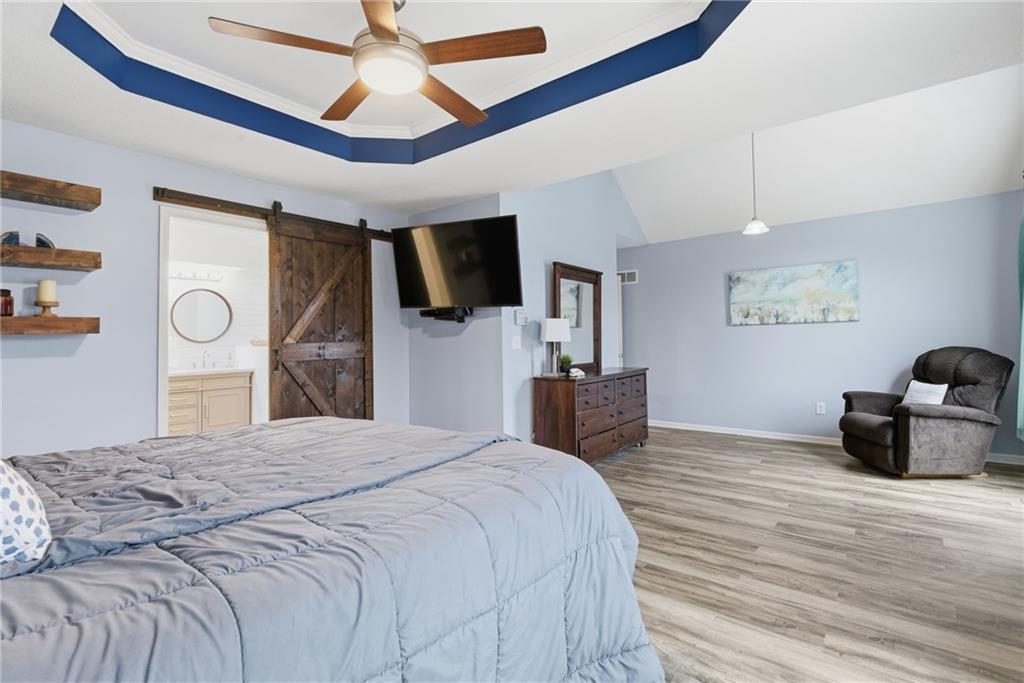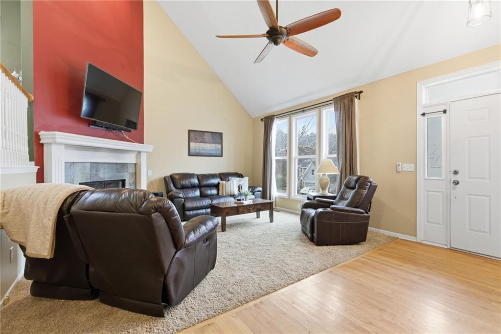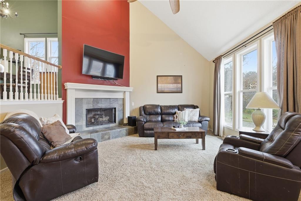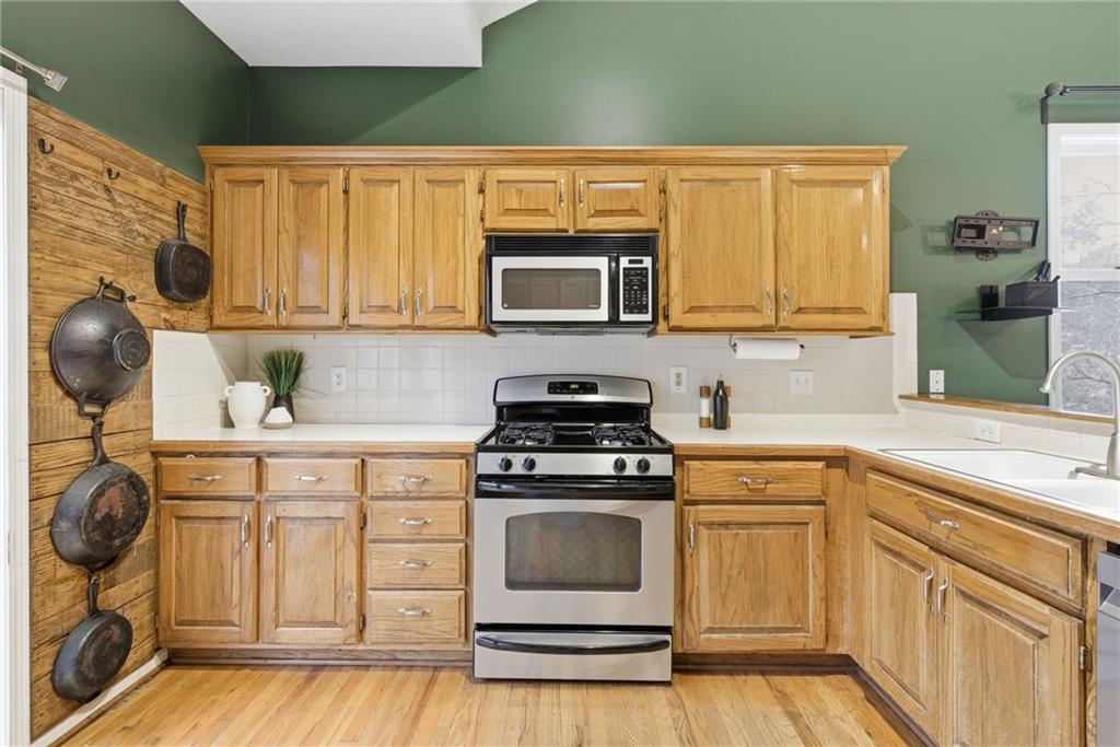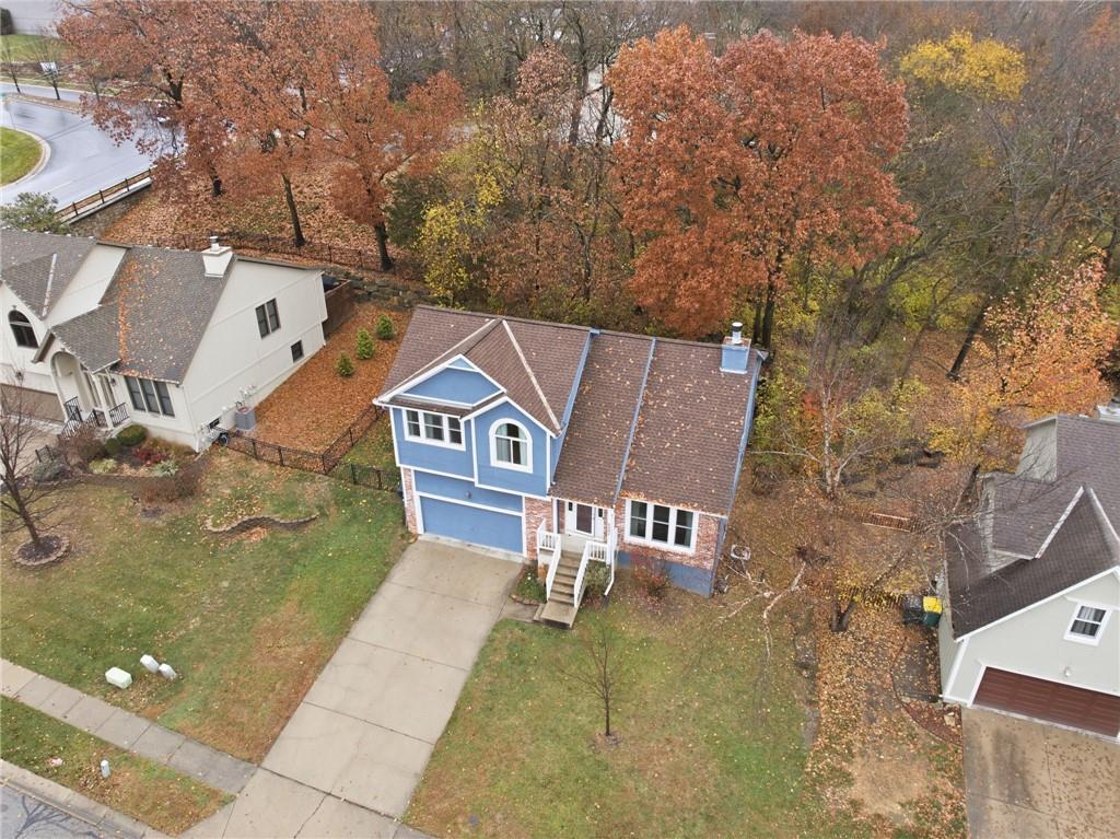 BACK ON MARKET -- NO FAULT Of SELLERS! Wind through the forested drive along Pflumm Road, where manicured lawns & well-kept homes lead you to Pflumm Woods—a picturesque Shawnee subdivision known for its peaceful charm & park-like setting. This beautiful home backs to a lush forest, offering privacy, shade, & year-round natural views. Step up to the inviting front entry & through the storm door into a hardwood floor foyer. To the right, the vaulted great room welcomes you with soft carpeting, a corner fireplace with a tile surround, & a large modern ceiling fan accentuating the soaring ceiling height. Just up the short staircase, the light-filled breakfast area opens to a thoughtfully designed kitchen with hardwood floors, rich stained cabinetry, a pantry, & a peninsula for added workspace & storage. Stainless steel appliances—including a gas stove—complete the space, while sliding doors open to a deck overlooking the treed backyard & a lower patio below. It’s the perfect spot for your morning coffee or an evening spent listening to the sounds of nature. Down the hall, two comfortable bedrooms share a beautifully updated bath featuring slate tile & a shower/tub combination. Upstairs, the private primary suite is a true retreat, complete with a sitting area, luxury vinyl plank flooring, & a stepped, vaulted ceiling with a ceiling fan. The spa-inspired ensuite bath boasts a double quartz vanity, an oversized soaking tub that opens to a tiled shower with dual showerheads, & a spacious walk-in closet conveniently located within the bathroom. On the lower level, you’ll find a cozy family room with a decorative ledge, a daylight bedroom, a full bath with tile flooring, & a laundry room. The interior entry to the garage is also located here for added convenience. Nestled among the rolling hills & wooded beauty of Shawnee and served by award-winning Shawnee Mission schools, this home perfectly blends nature, comfort, & everyday functionality.
