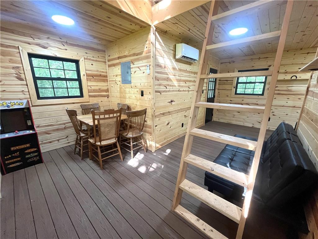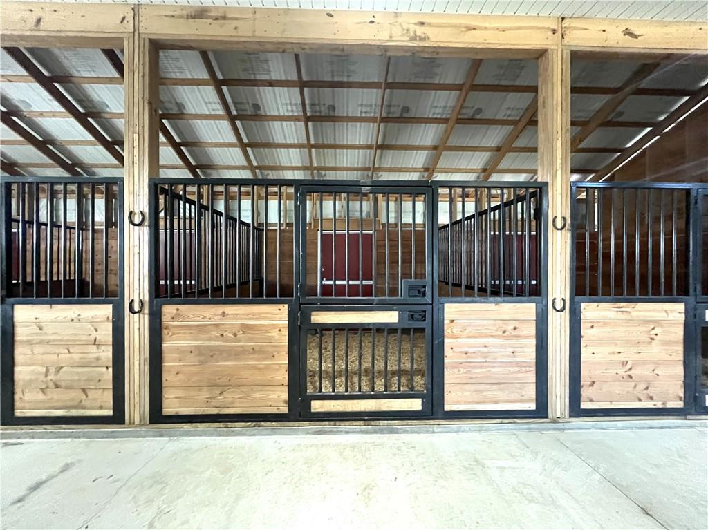 Custom Barndominium Estate on 36 Acres with Pond, Horse Facilities & Treehouse. Discover the perfect blend of luxury living and equestrian amenities. This one of a kind barndominium sits on 36 sprawling acres, complete with a pond, a dream treehouse, and premier horse facilities. Pull up the driveway to a picturesque lane to arrive at your custom barndominium. Inside, soaring wood ceilings, a chef’s kitchen—complete with quartz counters—with open concept living. Two cozy bedrooms, office, laundry and bath are just down the hall. Step outside to the equestrian compound: eight premier stalls open onto paddock runs, inside wash bay area, and a 60x60 indoor arena that lets you ride year-round. A water line from the pond feeds the concrete trough and there are two automatic waterers for livestock convenience. Enjoy riding the horse trails at Poosey Conservation which is less than 7 miles from residence. Descend a gentle slope into the woods to discover the architect built treehouse. Fully heated and cooled, with running water ran to the house and reinforced safety railings, it’s set on stilts among the walnut boughs—an unforgettable venue for weddings, retreats or luxury micro-stay rentals.