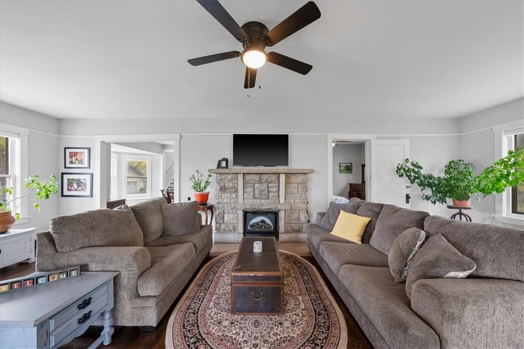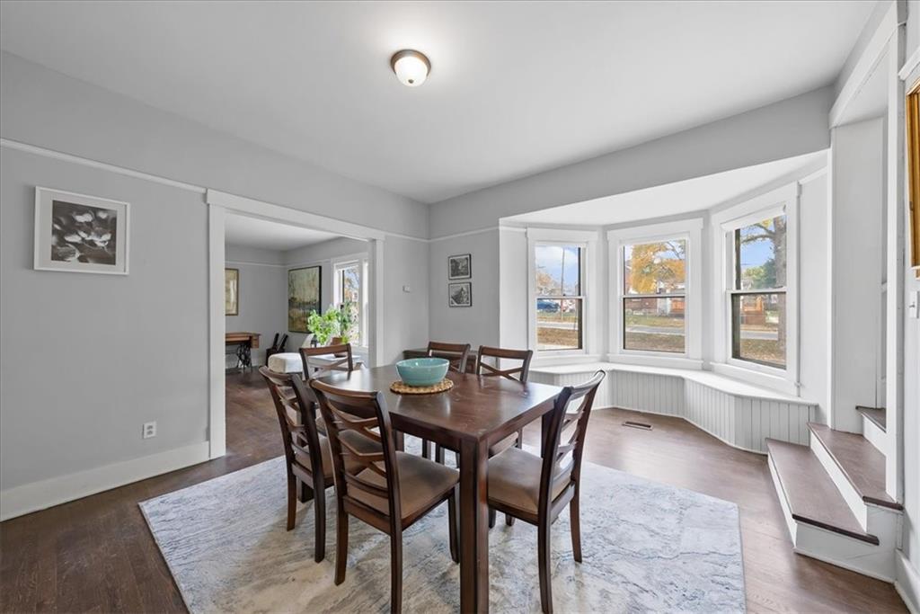 This delightfully charming 2-story home was built in 1900 and is located near Grandview's historic district, just blocks from downtown's shops and restaurants and offers easy highway access, just minutes away. Upon arrival, this spectacular 1.2 acre double lot impresses, with mature trees providing shade and a serene park-like setting (includes adjoining lot 803 High Grove). The detached garage offers parking, additional storage or a workshop space. On the exterior is a blend of modern convenience with the vinyl siding and a touch of vintage personality with scallop siding at the gables that honor the home's heritage. The sunroom in the front of the home is perfect for enjoying morning coffee or relaxing with a good book. The living room welcomes its guests with beautiful hardwood floors throughout and an electric fireplace for cozy ambiance. Flow into the dining room, which features a bay window seat and built-in buffet, ideal for entertaining. The kitchen, in the back of the home, opens to a breakfast nook for casual dining on one side and leads out into a closed in back porch area that gives conservatory energy with its many windows. Continue through the kitchen, past the powder room, to a potential primary bedroom, which offers up the convenience of single-floor living, complete with main-level laundry. Head upstairs from the dining to find four more spacious bedrooms with generous closets and tall ceilings that create an airy, open feel plus a full bathroom to serve any inhabitants needs. Picture rails provide an old-timey nostalgia as they preserve the original plaster walls. With a newer AC and excellent overall condition, this five-bedroom, 1.5 bathroom home has been lovingly maintained and is ready for its next chapter. Pre-inspections have been conducted with reports available upon request for buyers' peace of mind and seller's desire to sell in it's present condition.