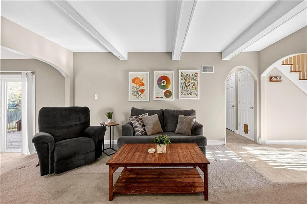 Welcome to this spacious & inviting 1.5 story home in the award winning Olathe School District, located just minutes from highway access, shopping, dining, and more! This 3 bedroom, 2 bathroom, 2 car garage GEM offers desirable ONE LEVEL LIVING with the primary bedroom on the main level, situated on a large lot in a picturesque, tree-lined cul-de-sac. Step inside & you’ll instantly appreciate the open floor plan creating a warm & inviting space, plus SO MUCH CHARACTER featuring arched doorways, vaulted ceilings, stone curved fireplace, rustic beams, and a soaring wooden accent wall. Conveniently laid out, each room flows effortlessly into the next, providing plenty of space to spread out. Enjoy meal prep and entertaining in the eat-in kitchen, while the formal dining room is perfect for special occasions. Upstairs, you’ll find two additional bedrooms and a full bath—ideal for family, guests, or a home office. Love the outdoors? Step out back to beautiful mature trees, storage shed & large deck overlooking the expansive backyard, great for relaxing or hosting barbecues. This home is truly move-in ready with freshly painted walls, newer carpet and LVP flooring, new wood siding, new chimney, and recently stained deck. Plus, enjoy peace of mind with a newer ROOF and HVAC system, as well as knowing the extensive foundation work has already been completed with a transferable lifetime warranty. All of this in an unbeatable location, near everything Johnson County has to offer, yet nestled in a quiet, highly sought after community, providing both privacy & accessibility. This home provides a fantastic combination of character, space, & convenience. Schedule your private showing NOW & see what makes it truly exceptional!
