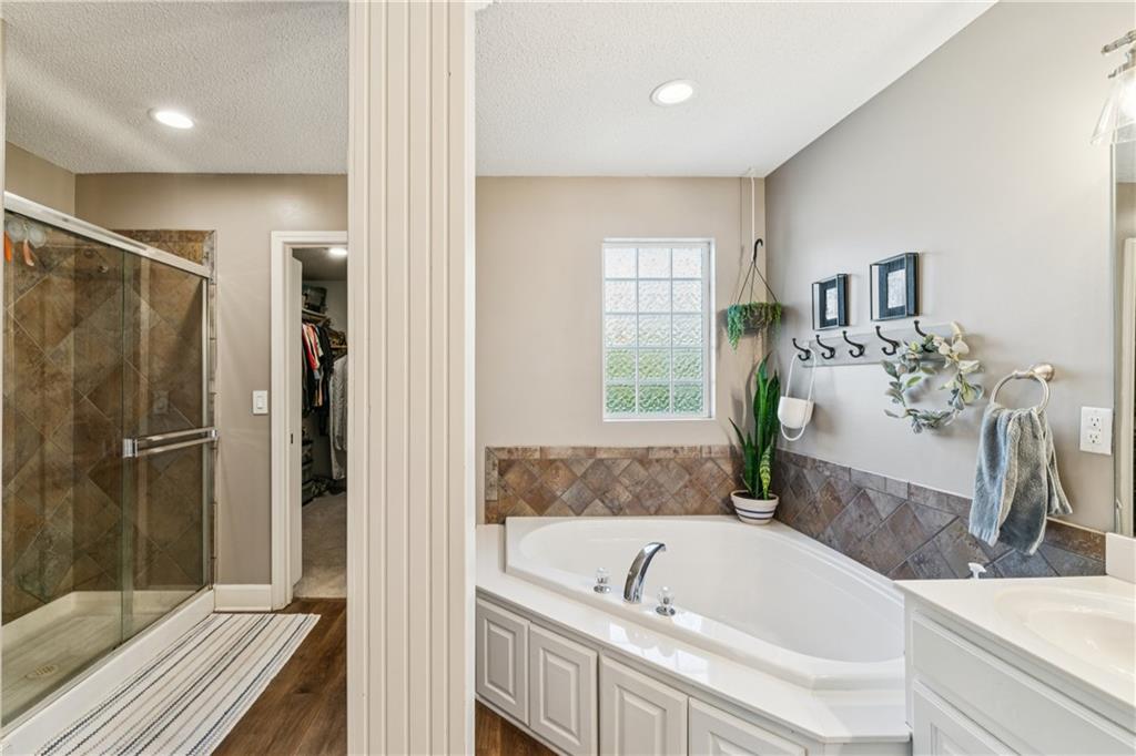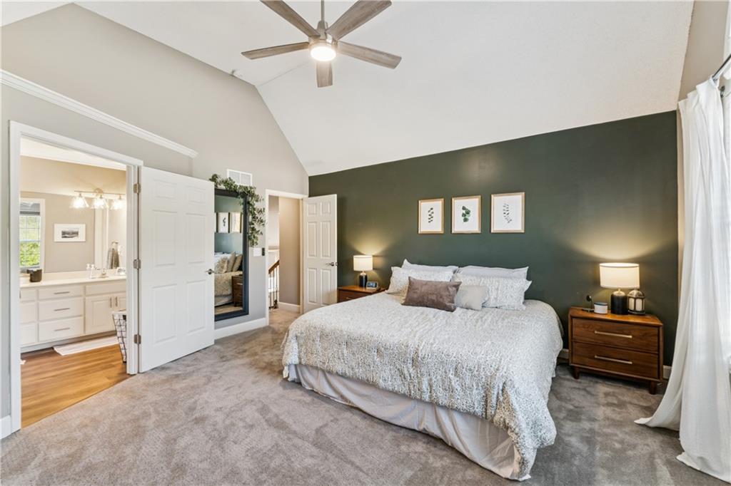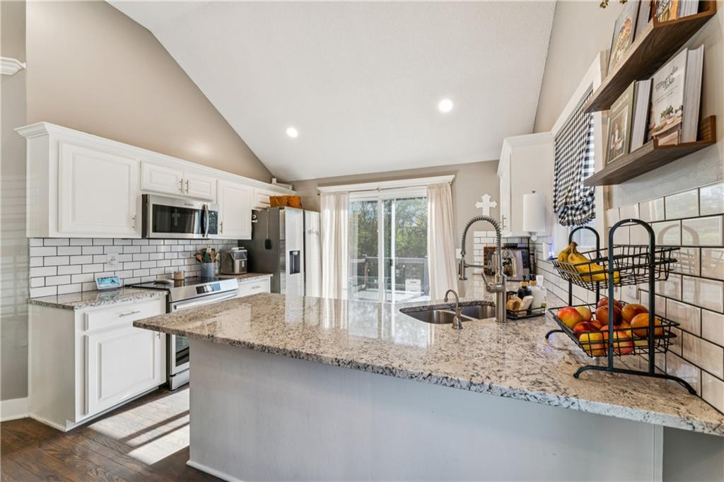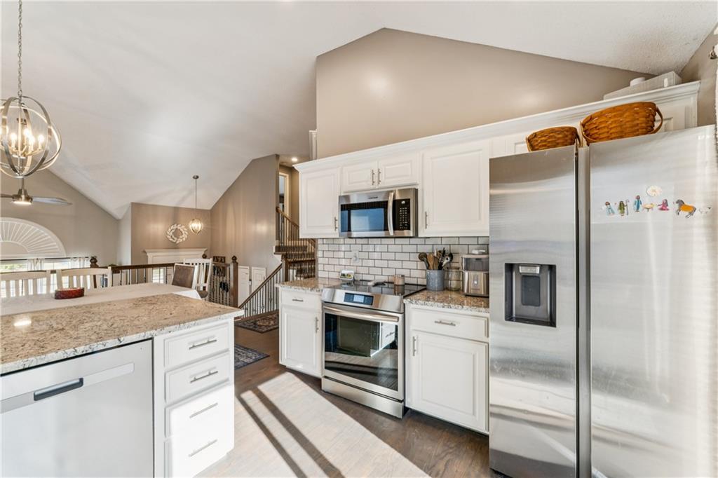 Welcome to this beautifully updated, light-filled home that’s bursting with style and comfort! The gourmet kitchen will make any home chef smile — featuring granite countertops, a breakfast bar, stainless steel appliances, and tons of storage. The spacious dining area overlooks the great room, where you’ll love gathering around the dramatic fireplace under the vaulted ceilings. The private primary suite feels like your own retreat — perched on its own level with a vaulted ceiling, spa-like bathroom complete with a soaking tub, separate shower, dual vanities, and a huge walk-in closet. Two large secondary bedrooms also feature walk-in closets and share a beautifully updated bathroom. The walk-out lower level offers even more living space with a cozy family room, 4th bedroom, third full bathroom, and abundant storage. Step outside onto the deck off the kitchen and take in the peaceful, private lot with its lovely tree-lined backdrop — the perfect place to relax or entertain! Come fall in love with this happy, sunlit home that truly has it all — space, style, and a wonderful sense of serenity!