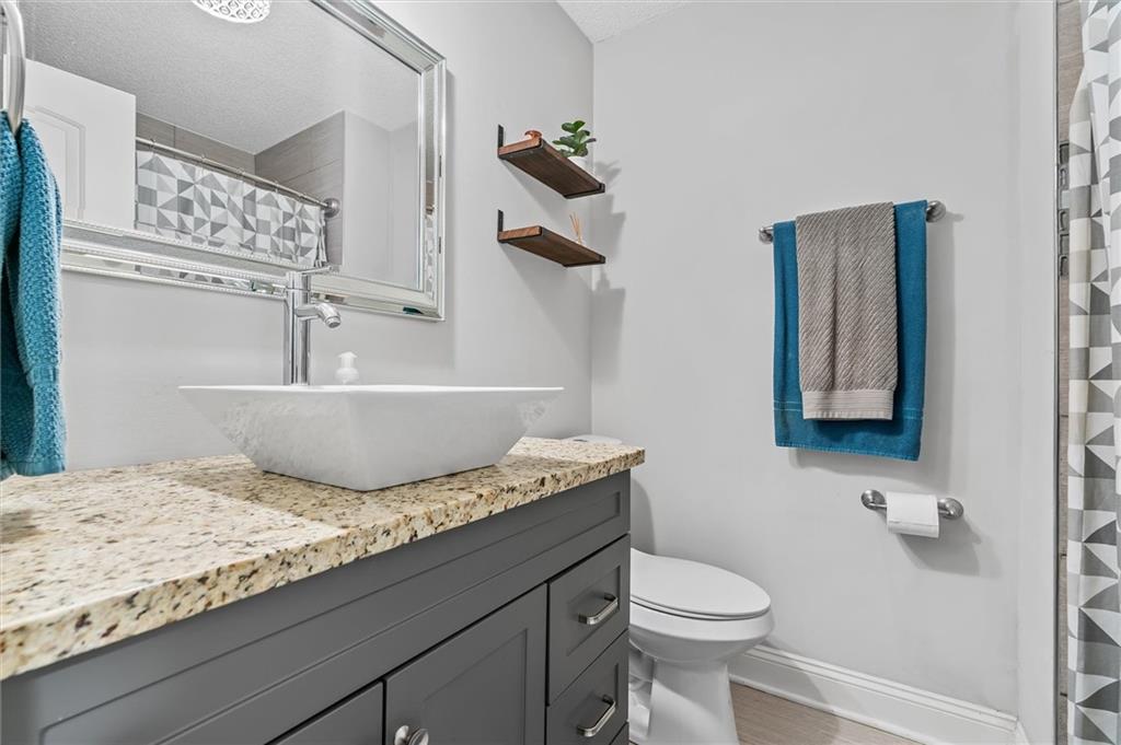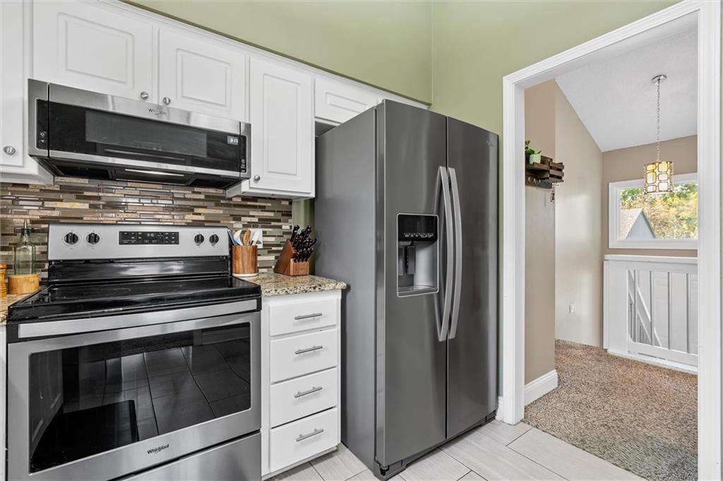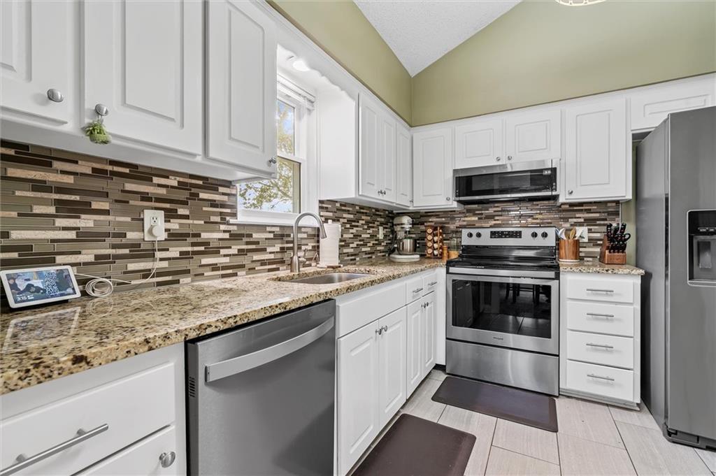 Beautifully updated and move-in ready 3-bedroom, 2.5-bath home in the heart of Olathe. Features include low-maintenance vinyl siding, all new windows (2021) a new driveway (2023), and fresh interior paint. The remodeled kitchen offers granite countertops, stainless steel appliances, and tile flooring. Both full baths have been tastefully updated with modern fixtures and finishes. The finished lower level includes a spacious rec room and half bath. Then step outside to the brand-new deck, patio and amazing outdoor space with a beautifully maintained yard and new fence. Don’t miss the community pool right across the street and many community walking trails throughout the neighborhood. Additional updates include an epoxy-coated garage floor (2020), new furnace and air conditioner (2023). Located on a quiet private street, this home combines comfort, style, and thoughtful updates throughout.