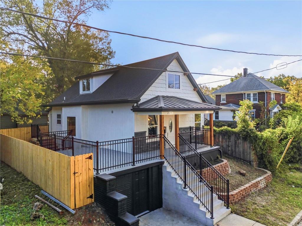 This stunning Kansas City, Kansas home has been completely remodeled from top to bottom — everything is new! Featuring a brand-new roof (6 months old), new gutters (1 month old), new siding, windows, electrical, and plumbing, no detail was overlooked. Step inside to an open and inviting layout with vaulted ceilings, beautiful LVL flooring, and custom craftsmanship throughout. The brand-new kitchen showcases custom cabinets, quartz countertops, a stylish tile backsplash, and all-new stainless steel appliances including a gas stove, dishwasher, and microwave. The bathroom has been fully updated with a sleek tiled shower and designer finishes. The living room features pine ceiling beams, floating maple shelves, a maple fireplace mantel, and shiplap accents that add warmth and character. Enjoy the outdoors with a new covered front porch featuring a metal roof, pine car siding trim on ceiling, and cedar support beams, plus an epoxy-coated front patio with new metal handrails. Upstairs has a spacious bedroom with walk-in closet. The new deck and 6-foot wood privacy fence make the backyard perfect for relaxing or entertaining. Additional upgrades include new sheetrock and insulation throughout, new carpet in the bedrooms, new maple stair handrails with iron spindles, new concrete flooring in the basement, and a new water heater. Located in Kansas City, Kansas, just minutes from Central Ave’s popular restaurants, highway access, and a short drive to downtown Kansas City — this home offers the perfect blend of modern comfort and convenience.