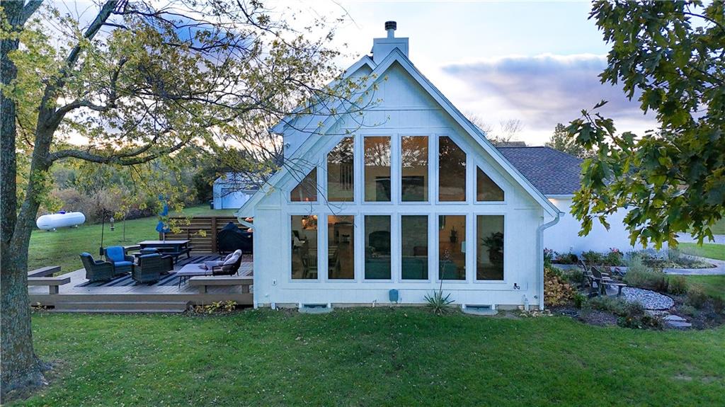 Luxury Countryside Retreat with Modern Elegance on 10m/l Beautiful Acres with a 2+m/l acre well maintained and manicured pond to enjoy timeless serenity and make many family memories Experience refined living in this beautifully fully renovated 1.5-story ranch, where modern luxury meets peaceful country charm. Flooded with natural sunlight through stunning large A-frame windows encompassing the morning sunrise views, and relax in it's open-concept living area framing breathtaking views of the serene landscape beyond. The gourmet kitchen is a chef’s dream, featuring a gas stove, premium finishes, and seamless flow for entertaining. A separate dining room area host plenty of space for family and friends. The primary suite offers a private escape with a spa-inspired bath, including a large walk-in shower and expansive closet space. Two more bedrooms on the second floor with their own private bathroom, living "den" space and office area. The finished basement provides a full secondary living area—complete with a large bedroom, full bath, and lounge space—perfect for guests or multi-generational living. Lots of Storage area for all your needs. Step outside and embrace the tranquility of your own private retreat. Enjoy peaceful mornings by the large serenity pond, and evenings around the fire pit, or unwind on the Trek decking patio surrounded by mature trees offering natural privacy. The property also features a **barn ideal for horses as well as a separate shop/garage for the hobbyist. And complete with the "taj mahal" Chicken coup for your feathered friends. Definitely a private and peaceful retreat to enjoy.