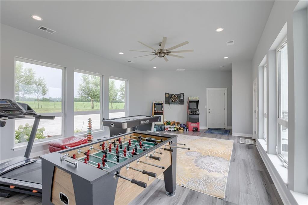 Over 4,400sqft, just under 20 beautiful acres, and a fully stocked 4 acre pond on prime interstate! Discover the convenience of this picturesque estate located just off exit 40 on I-35 in Lathrop, Missouri. Ideal for business owners, ranchers, large families, or those wanting a quick trip to the airport or a short trip back from the big city! This stunningly designed home offers four spacious bedrooms, four bathrooms, 2 fireplaces and a massive great room perfect for family living and entertaining guests. Inside, you'll find a luxurious blend of marble and high end flooring that adds elegance and durability throughout. The heart of the home features a state-of-the-art kitchen with an 11ft custom granite island, walk-in panty, and personalized kitchen cabinetry. The expansive concrete driveway and a large pad outside the four car garage provides ample parking and easy access for incoming guests. Additionally, the main floor offers oversized hallways and doorways making it completely handicapped accessible. Outside of the home there is a 30x40 barn with a fully fenced paddock for either horses or livestock with amenities. Additional highlights include, a vault style safe room, a dedicated office space for working from home and an integrated Generac backup generator, ensuring your home remains comfortable and functional in any situation. This property seamlessly combines luxury, security, and practicality, making it a true sanctuary. Don't miss the opportunity to own this remarkable estate just 40 minutes from MCI Airport & 30 minutes from Downtown Kansas City. —schedule your private showing today and experience all your next stunning home has to offer! Homeowner is also willing to sell this estate with the adjoining 9.14 Acres to the west for an additional price! MLS #2583419