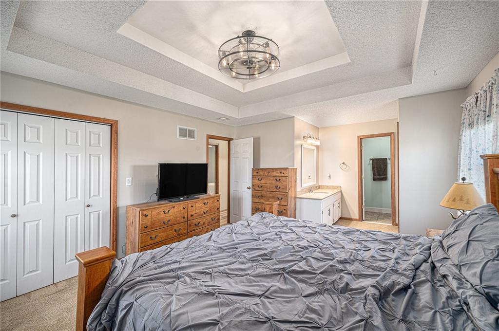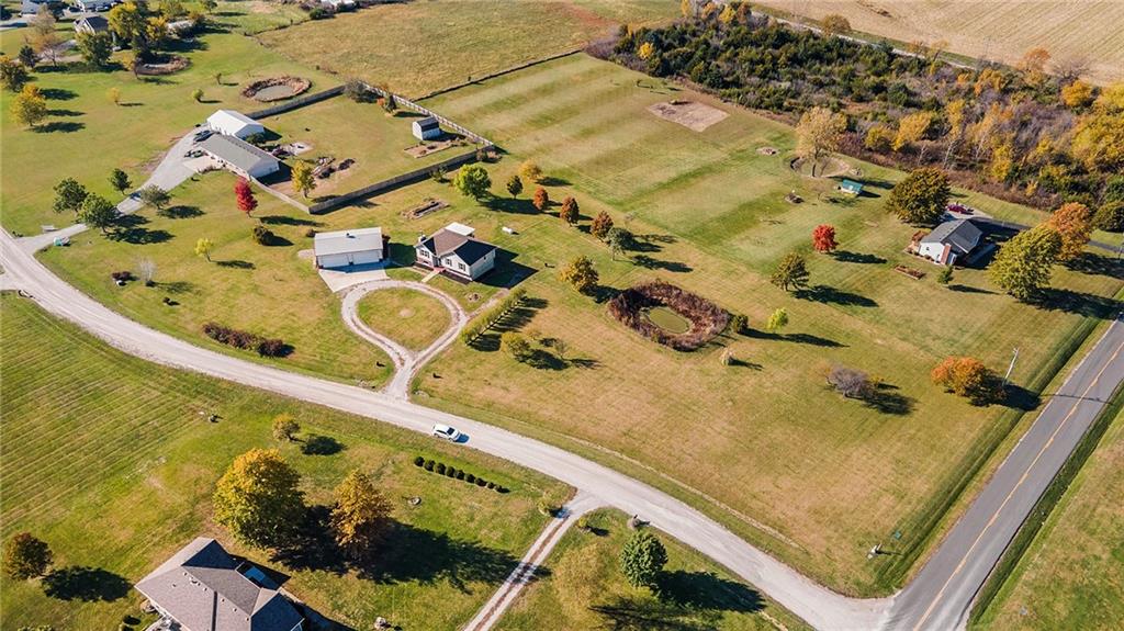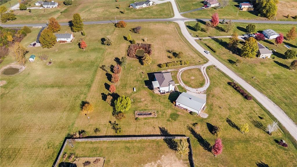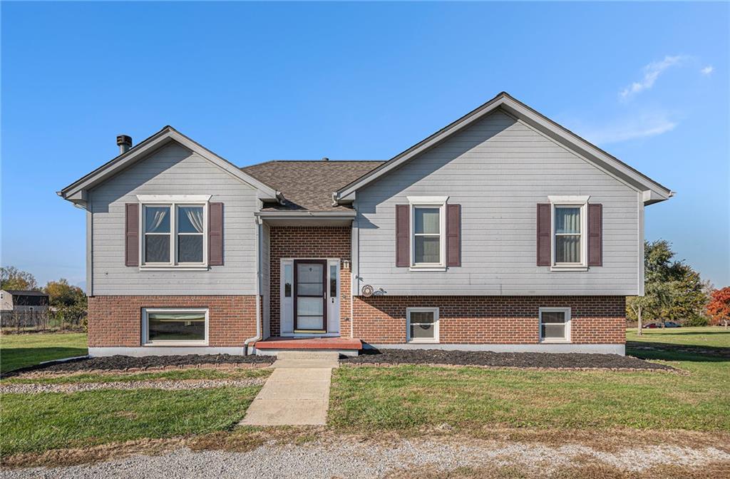 This charming 3-bedroom, 2.5-bath split-entry home sits on 3 acres and combines functional living with versatile spaces. Enjoy two spacious living areas, including a massive family room thoughtfully converted from the garage. Ideal for entertaining, hobbies, or a cozy retreat. The fully equipped kitchen flows effortlessly to a covered deck overlooking the backyard, perfect for outdoor dining and relaxation. A formal dining room provides ample space for gatherings of any size. A circular driveway leads to a generous 45’x30’ detached garage/workshop, offering abundant room for vehicles, projects, or storage. With its smart layout, expansive indoor and outdoor space, and prime location just minutes from I-35, this home offers the perfect blend of country charm and modern convenience.