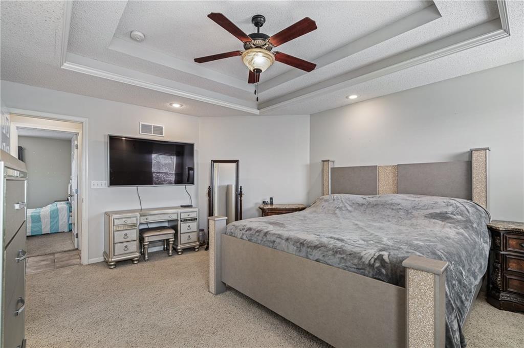 This bright & inviting split-level home is truly ready for its new owner. The open living room and kitchen feature vaulted ceilings and generous natural light. Major updates have already been done— including a roof that’s under two years old and a newer HVAC — so you can just move in. Living room has a fireplace and the eat-in kitchen walks out to the deck which overlooks the large back yard with newer fence, offering plenty of outdoor space. Primary bedroom is spacious with cathedral ceiling and large ensuite bathroom has double vanities. Recreation room in finished lower level is great for additional living space. Featuring 3 Bedrooms, 2.5 Baths, and a 2-car garage, there is also plenty of storage in the lower level. Great neighborhood with a community pool and park. Welcome Home.