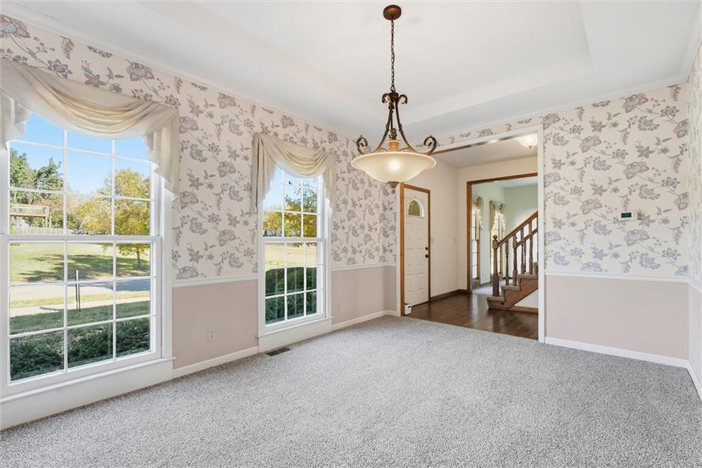 Situated on an extra large treed lot with plenty of yard space in south Overland Park, this spacious and well-cared-for one owner home offers the perfect blend of classic charm, modern potential and an unbeatable location in the heart of Blue Valley. Inside you’ll find brand new carpet and lots of new paint throughout. The spacious living room features a cozy fireplace surrounded by classic built-ins. The open kitchen and dining area offer plenty of storage and countertop space, along with unbeatable views of the large treed backyard. The floor to ceiling windows in there also fill the home with tons of natural light. Upstairs you’ll find four bedrooms, offering great flexibility. The large master suite features a coffered ceiling, walk-in closet and an entire separate sitting room with a fireplace. Additional features include an unfinished walk-out basement. Outside, the nearly half-acre lot offers space to relax or play, with a deck, covered patio and fenced in yard, perfect for kids and pets! Located in a well-established Overland Park neighborhood that offers both tranquility and connectivity, you’re minutes from a beloved park (just south of the property), shopping, and dining. Don't miss out!