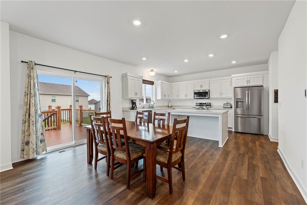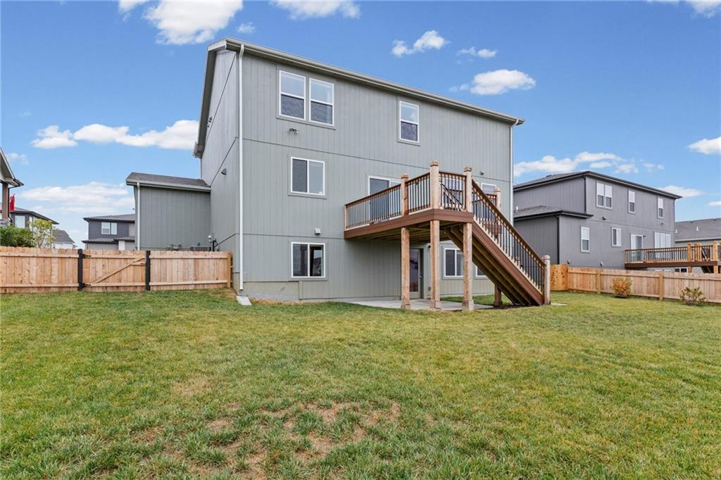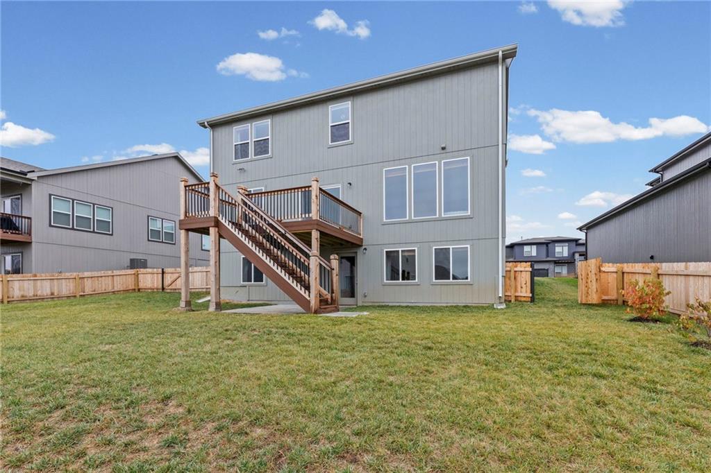 Close and move in before Christmas! Better than new, custom-built home in 2025. No waiting for construction. Skip the hassle and move right in. Owners have added a 4-foot privacy fence, new garage doors, openers, and window coverings. This popular floor plan offers a main floor bedroom that is a great location for a home office, 4 bedrooms on the upper level and one bedroom and full bath on basement level. The roomy recreation room walks out to a fully fenced backyard and patio. Nice deck for entertaining. Transferable 2-10 Home Buyers Warranty.