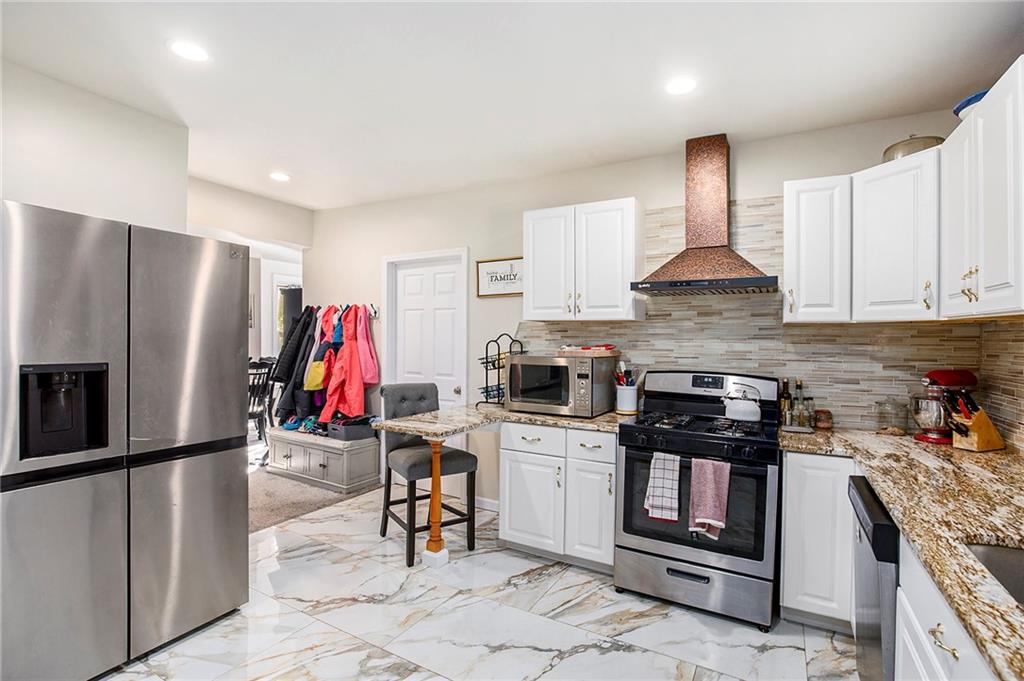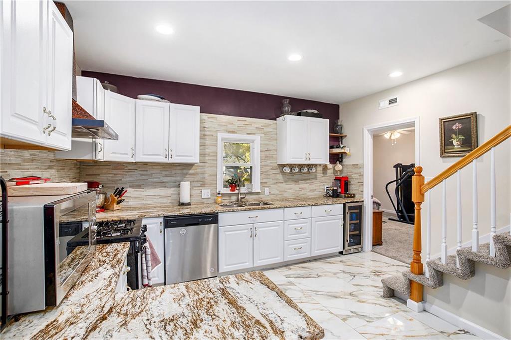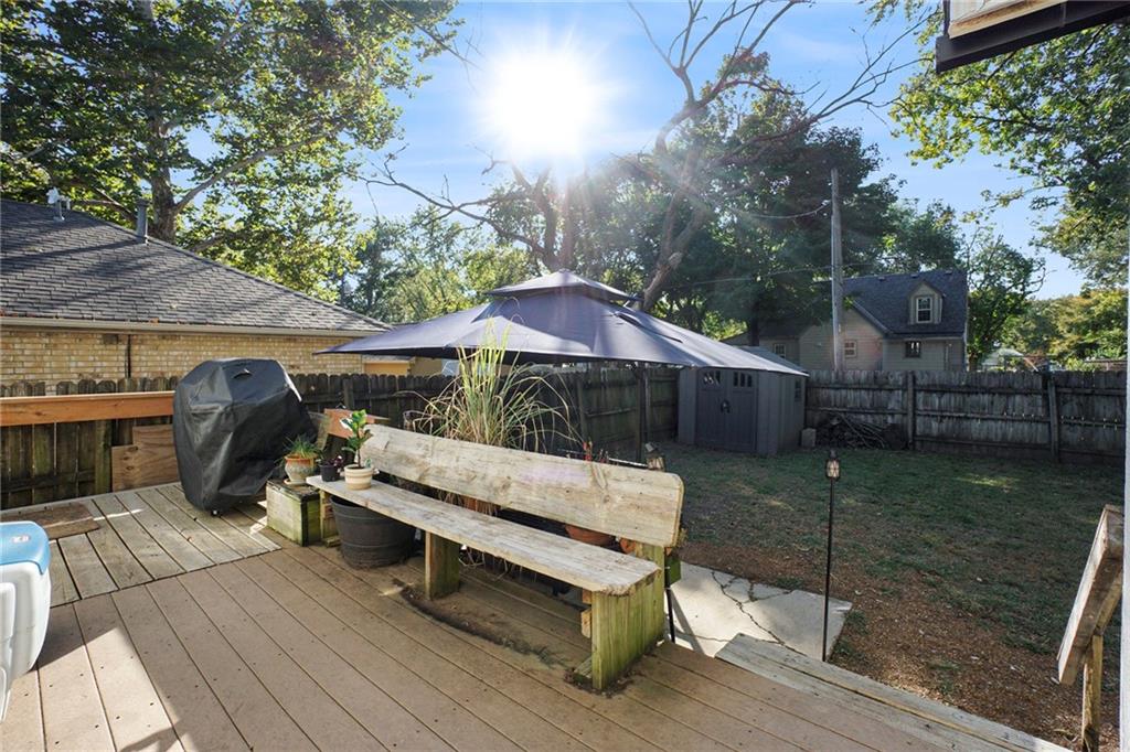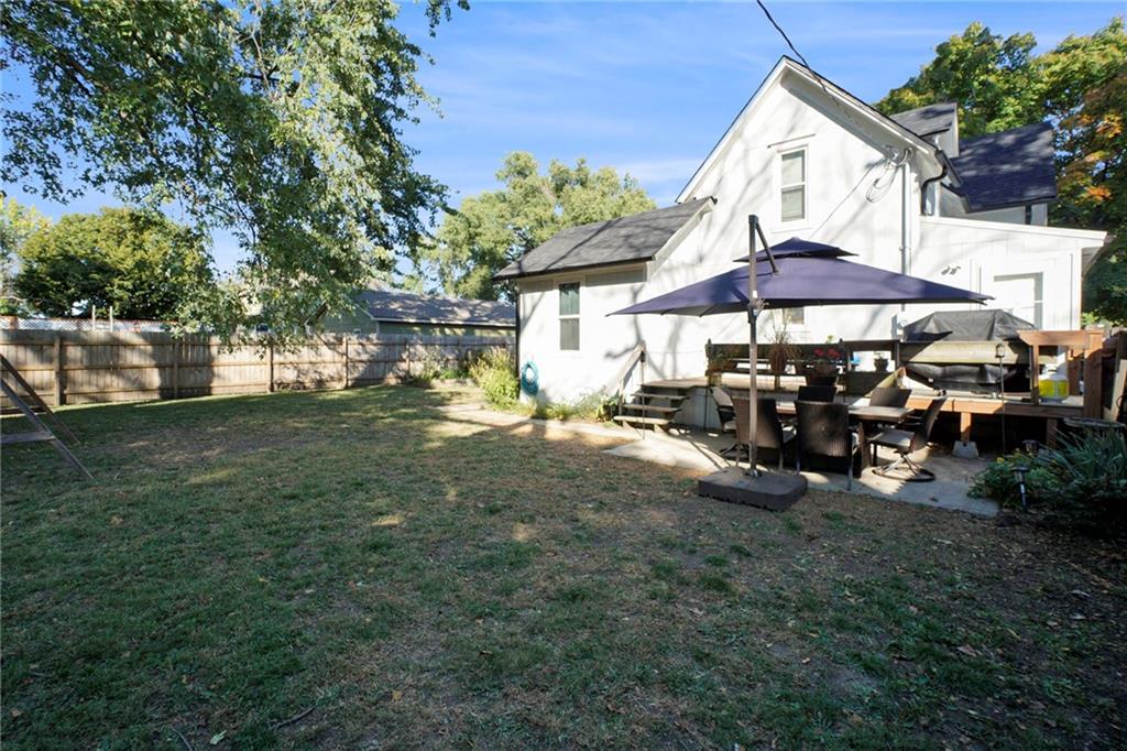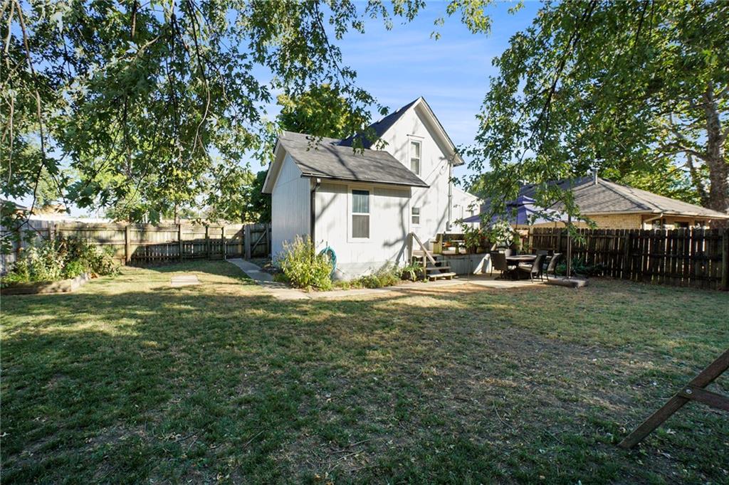 Charming, updated farmhouse in the heart of town! This 3-bedroom, 3-bath home blends character and modern comfort from the moment you step through the front door. One of the oldest homes in Louisburg, it has recent major updates including NEW Roof 2 years, HVAC system and water heater 4 years ago!!! The open main level features a light-filled living and dining space with neutral tones and cozy carpet, flowing easily into the kitchen. You’ll love the stylish updates — white cabinetry, granite counters, tile backsplash, and sleek stainless steel appliances. Upstairs, spacious bedrooms offer warmth and charm, with unique ceiling angles and large windows bringing in natural light. Both bathrooms are beautifully maintained, with clean finishes and thoughtful storage. Step outside to enjoy a private fenced yard, perfect for gatherings or playtime under the shade of mature trees. A large deck provides plenty of room for grilling or relaxing, and there’s a shed for added storage. With its inviting front porch, modern updates, and convenient location near shopping, dining, and parks — this home is the perfect mix of classic charm and everyday functionality!