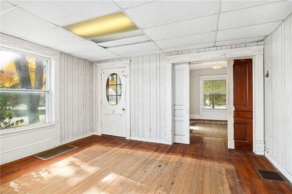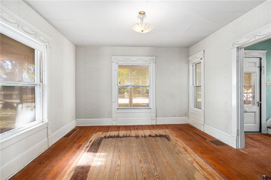 Welcome to Hiawatha, KS, the City of Maples and proud home of the Grand Halloween Parade, the longest-running continuous Halloween parade in America, dating back to 1914! This beautiful brick home features a charming wrap-around porch, two front doors, and is nestled on a picturesque corner lot surrounded by mature trees. Inside, you'll find a blank canvas ready for you to add your personal touch- an ideal opportunity to create your dream home. The residence offers plenty of natural light, original hardwood floors, along with unique woodwork and architectural details that exude character and charm. Priced to sell and awaiting your renovation ideas, this home presents a fantastic opportunity to make it uniquely yours. Come see it today and envision all the possibilities!
