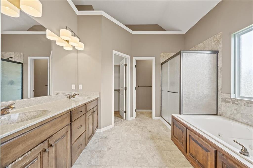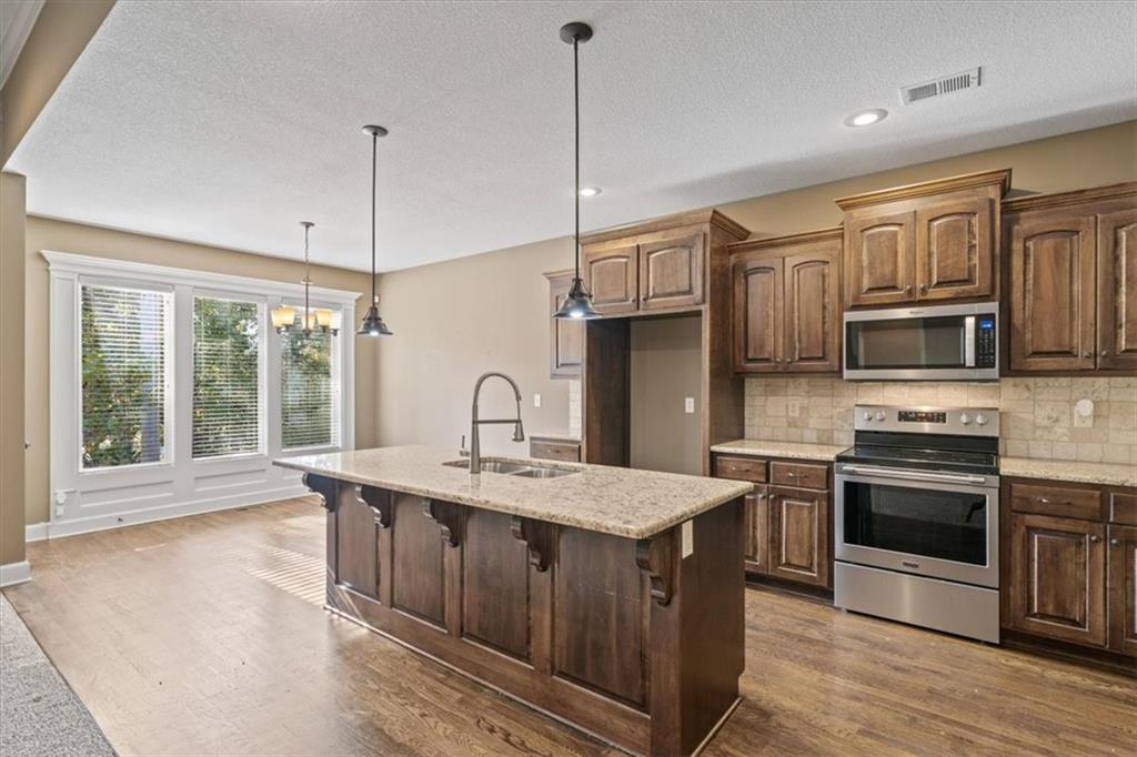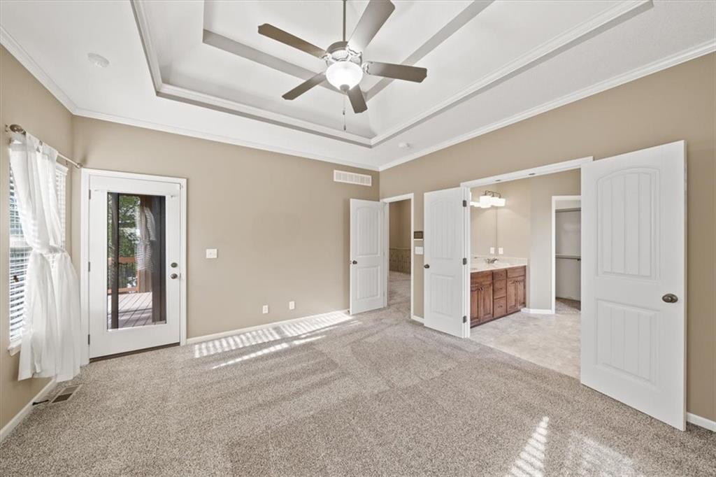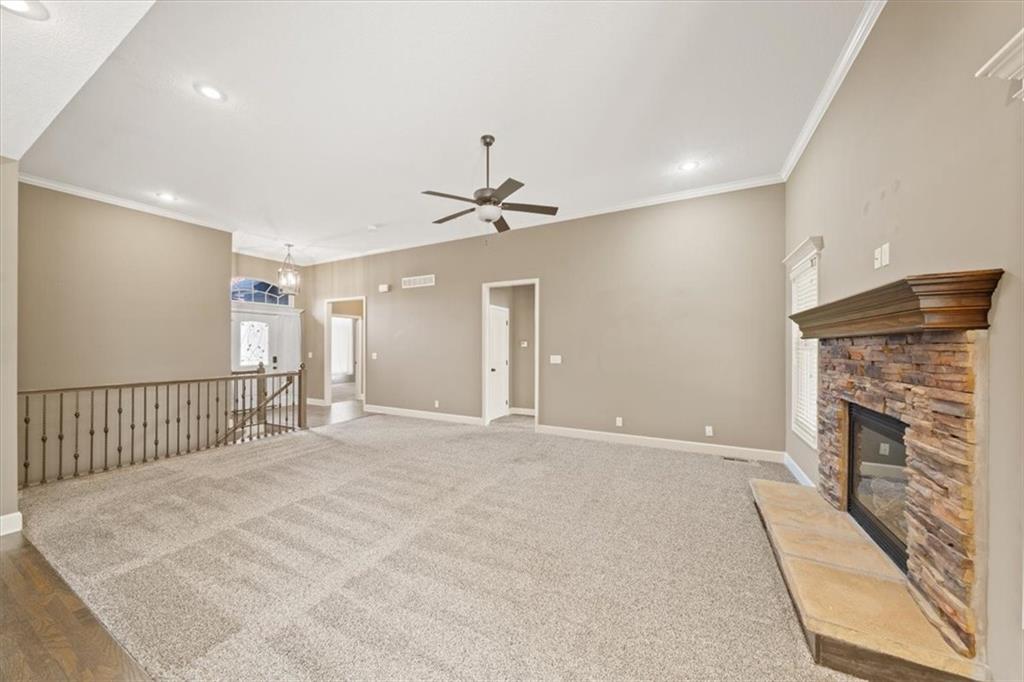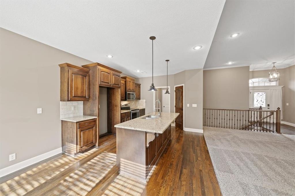 Welcome home to 105 N Eastglen! Reverse 1.5 Story located in a quiet cul-de-sac of the coveted Eagle Glen Subdivision. Open concept on main level with lofty ceilings and lots of natural light. Kitchen features large island, walk-in pantry, and stainless steel appliances. Main level primary with private full bathroom and walk-in closet. Walk-out basement with large rec area, two bedrooms, and full bathroom. AMAZING covered deck for entertaining. Spacious three car garage with large driveway. Close to highways and shopping. Raymore school district.