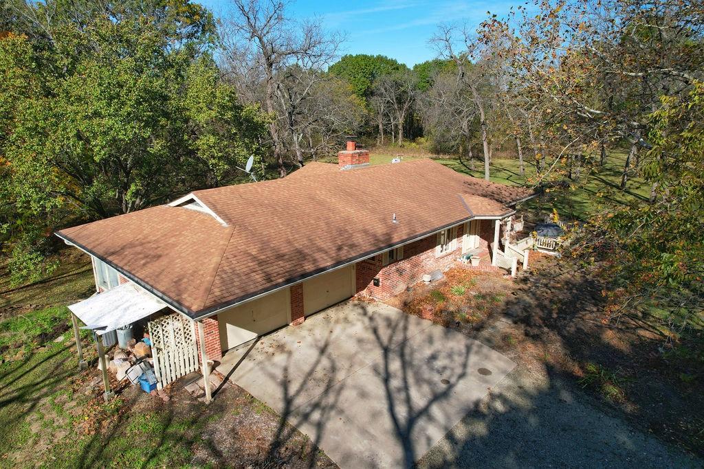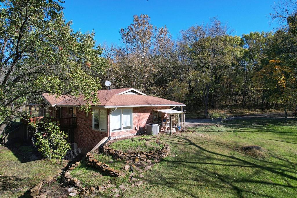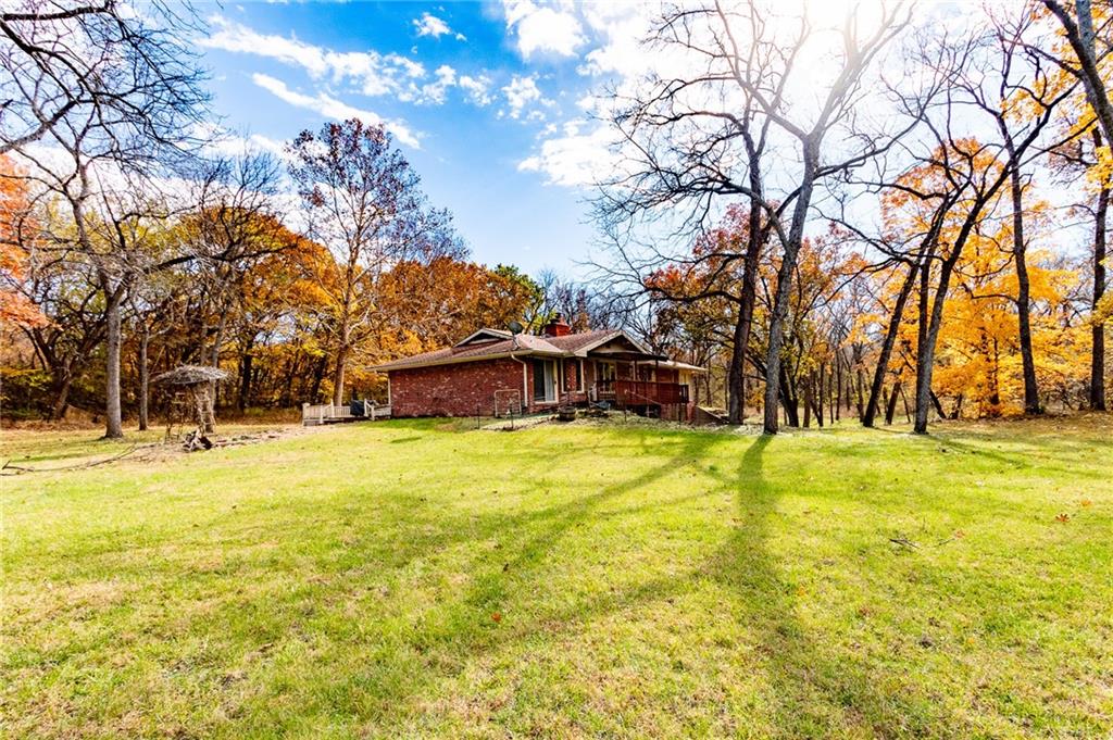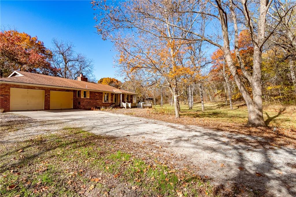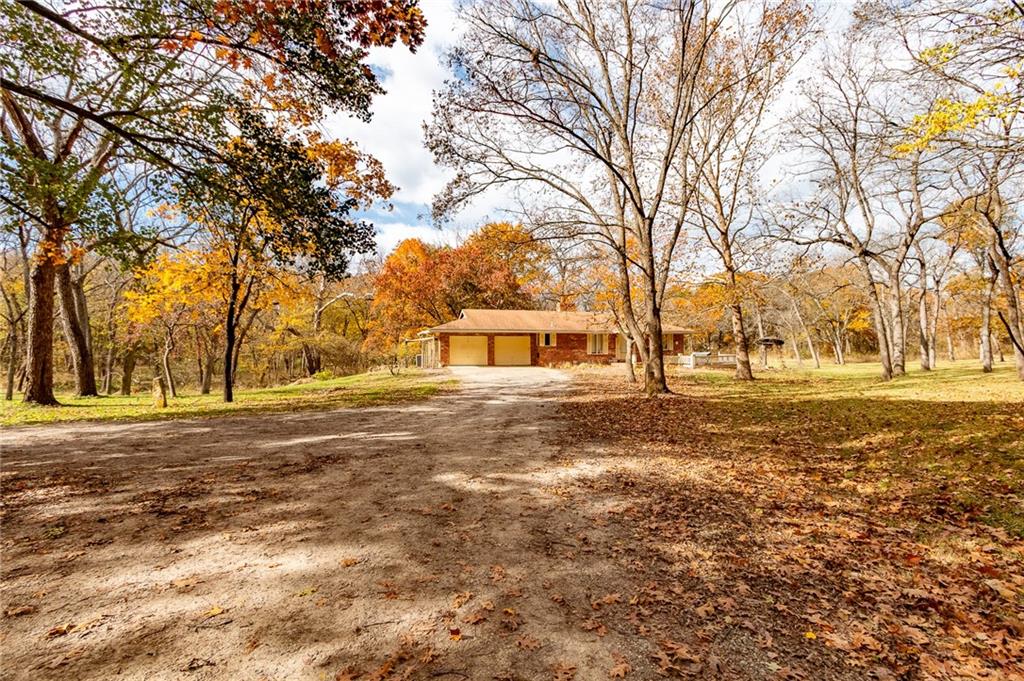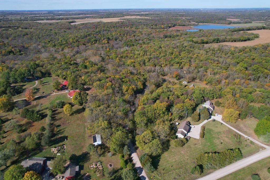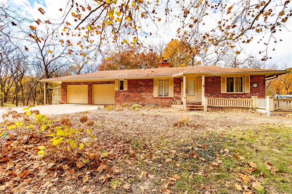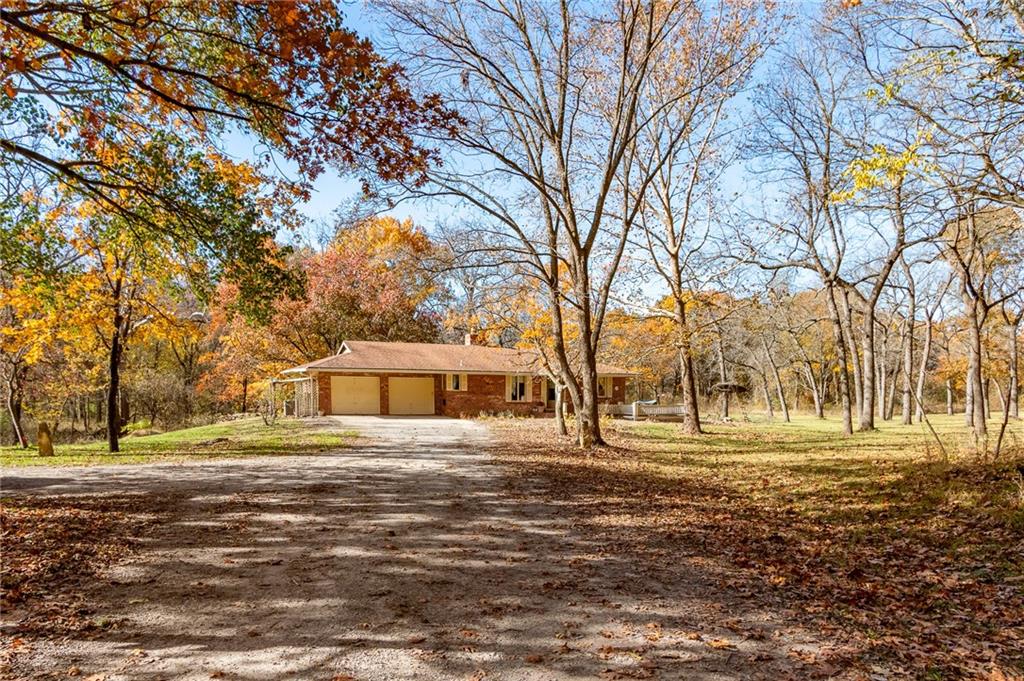Hidden at the End of a Quiet Country Road Lies a Secluded 80+/- Acre Rural Retreat! Discover the ultimate in peace and privacy with this secluded rural paradise. Nestled at the end of a quiet dead-end road, this property offers complete privacy—you’ll see no one unless you choose to leave the property. With only a few neighbors along the road, this is truly a place where you can unwind and disconnect from the outside world while only 15 minutes from Lawrence! Classified as a Tree Farm as logging has happened periodically in the timber. This one-owner all-brick ranch home sits amid rolling timberland and a spacious, park-like yard accented by mature, well-maintained trees. The immediate surrounding timber has a network of cleared mowed walking paths and trails. Chicken Creek winds gracefully through the property, just behind the home, adding to the natural beauty and serenity. This solid home on a full-basement home offers timeless construction and endless potential for refreshing and customizing to your taste. Every window offers a stunning view of the surrounding timber, and both the covered front porch and covered back deck invite you to relax and take in the peaceful scenery and wildlife. This all-electric home features two fireplaces equipped with Heatolater systems, designed to circulate heated air efficiently—one even connected to the central air system for whole-house comfort. Starlink is already on-sight and works wonderfully for internet and wi-fi calling. Perfect for nature lovers and outdoor enthusiasts, the property abounds with whitetail deer and wild turkey. Whether you’re seeking a private homestead, a hunting retreat, or a quiet getaway surrounded by nature, this property offers it all. Schedule your showing today!