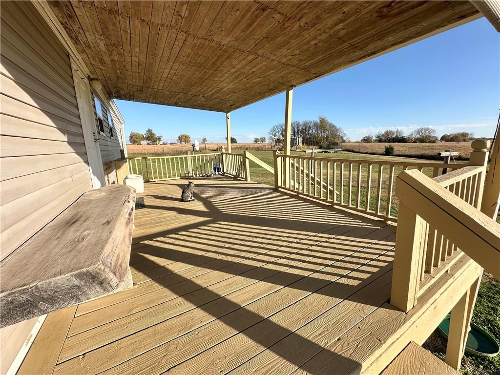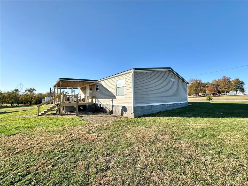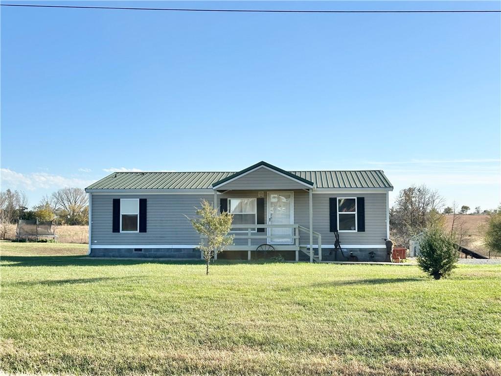 You don't want to miss this adorable 3 BD, 2 BA home on 4 acres....on blacktop! Ready to move into & updated throughout. Open floor plan. The kitchen features a kitchen island, ample storage & stainless steel appliances that stay! (refrigerator, gas stove, dishwasher & microwave) The laundry room is off the kitchen (washer & dryer stay). The living room is open to the kitchen. Entertainment center with fireplace stays! The master bedroom has a walk in closet and a spacious master bathroom featuring a shower & a garden tub. The two additional bedrooms are on the other side of the house, along with the 2nd full bathroom. You will love sitting on your covered deck watching the kids run and play or just having your morning coffee. Metal roof. 2 car detached garage w/concrete floors & electric. Storage shed.