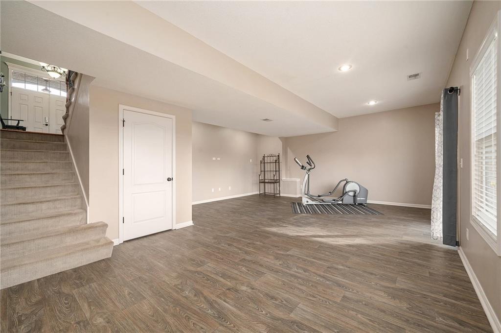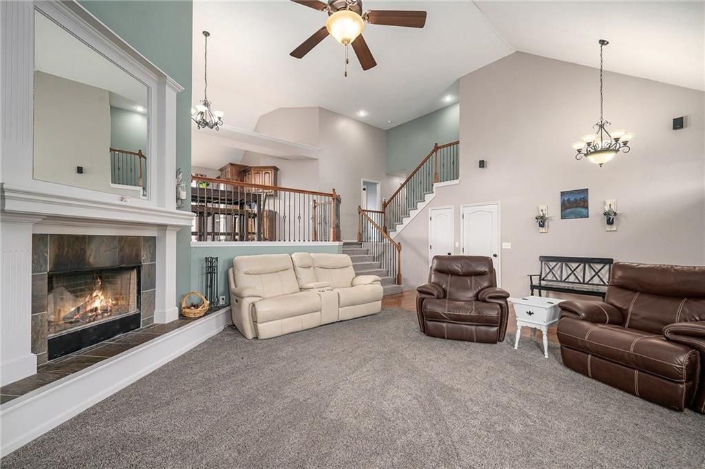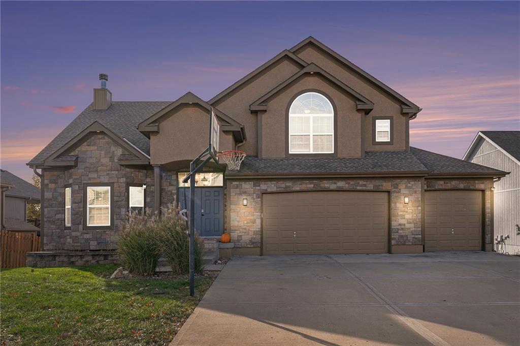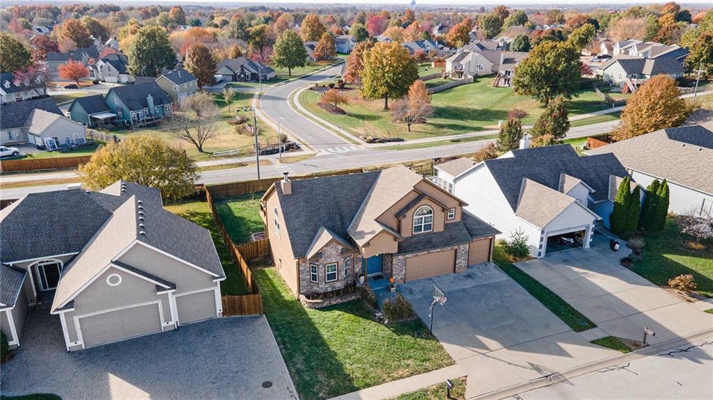 This beautifully updated home features fresh exterior and interior paint, a basketball hoop, a brand new back deck, and a new HVAC system. Through the double front doors, you’re welcomed into a spacious living room with vaulted ceilings, a cozy fireplace, and large windows that fill the space with natural light. Just a few steps up, the open kitchen and dining area continue the vaulted ceilings and offer custom cabinetry, ample counter space, and a sliding glass door leading to the new deck, perfect for gatherings and outdoor dining. The home includes four spacious bedrooms and three and a half bathrooms. The master suite is situated on its own private level, creating a retreat-like atmosphere, and features a luxurious bathroom with a soaking tub, separate shower, dual sinks, and a large walk-in closet. On the same level as the kitchen are two additional bedrooms, each with walk-in closets, a full bathroom with double sinks, and a half bath in the hallway. The fully finished basement adds even more living space with a large recreation room, a full bathroom, and a finished bedroom, plus sliding doors that open to the backyard. Below the basement is an unfinished sub basement offering plenty of space for additional storage. Completing this wonderful home is a three car garage and a prime location within walking distance to Smithville Lake and a golf course, making it ideal for those who love both relaxation and recreation. Welcome to your new home!!