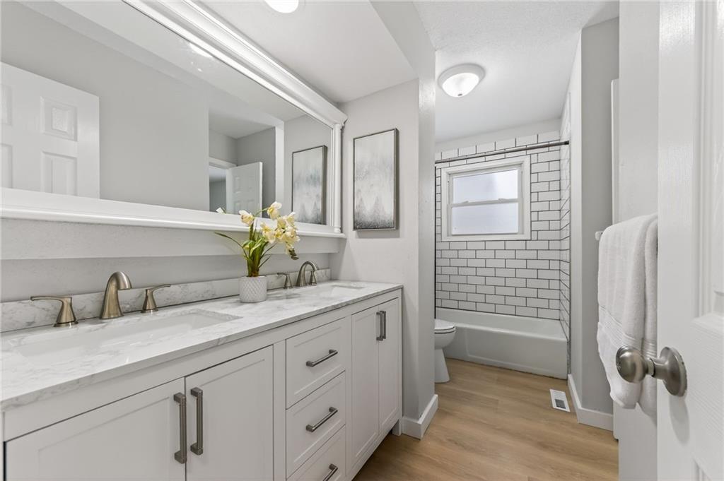 This beautifully updated 3-bed, 2-bath home blends modern finishes with a super functional layout, including two non-conforming bedrooms and a second living space in the finished basement. The main level feels bright and fresh with new vinyl plank flooring, a large dining area, and a spacious kitchen featuring an island, granite countertops, new cabinets, and all-new appliances. Downstairs offers brand-new carpet and the perfect setup for a media room, playroom, or home office. Outside, enjoy a covered patio overlooking a fully fenced yard with a storage shed—plus peace of mind knowing the roof and gutters are brand new. This one checks all the boxes for updated, move-in-ready living with space to spread out.