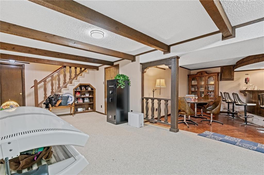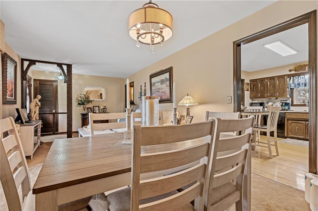 Located in a desirable neighborhood, this 3 bedroom, 2.5 bath home sits on a generous half-acre lot m/l with mature trees. Featuring a classic brick front and vinyl siding, the home offers a cozy fireplace, formal living and dining rooms, and updated kitchen countertops. The master bath boasts a custom tile shower, adding a touch of luxury. Enjoy outdoor living on the patio, and take advantage of the partially finished basement with a wet bar for entertaining. This home is the perfect blend of comfort and convenience!