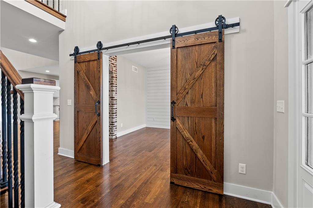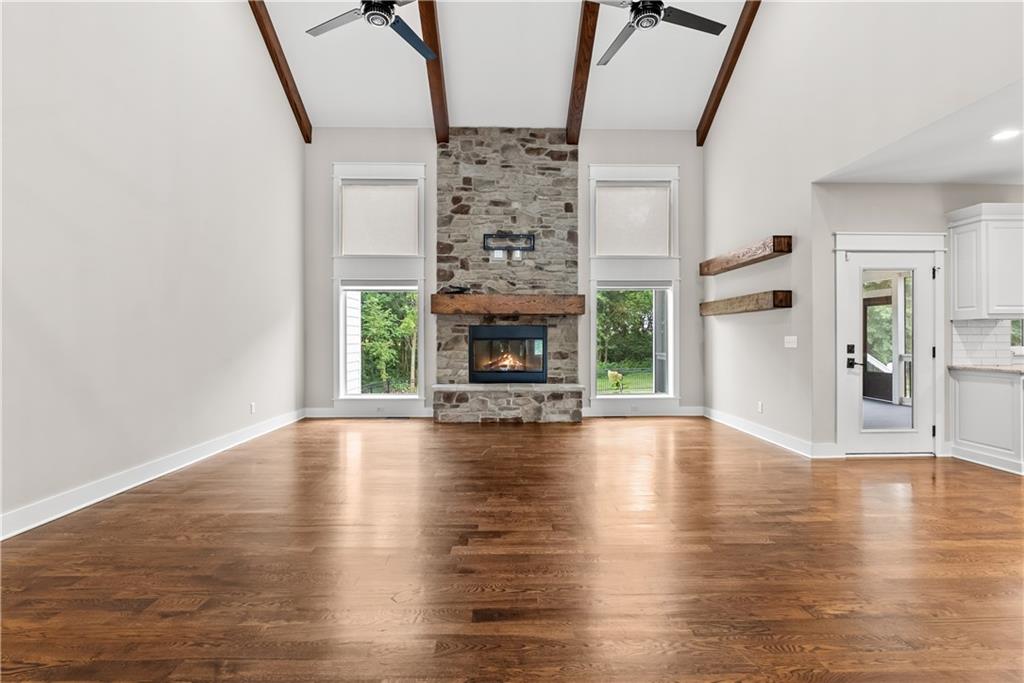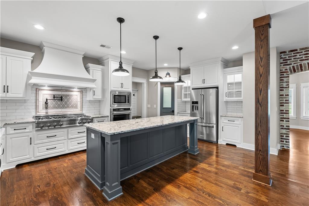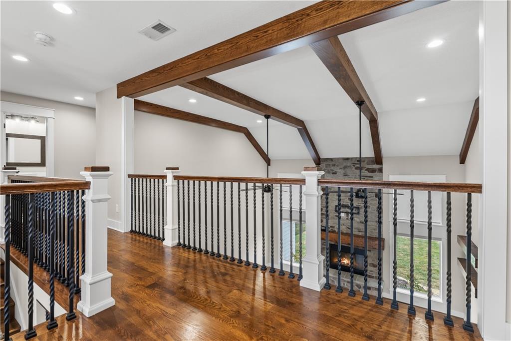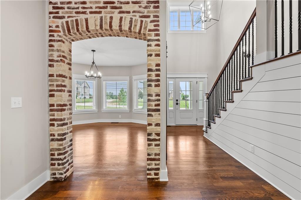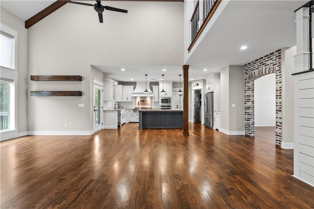 Stunning Modern Farmhouse situated on just over 1 Acre in the coveted Shadow Glen Subdivision. This Gorgeous 1.5 Story home highlights High-End finishes along with an open floorplan that is perfect for Entertaining! As you enter the home you are welcomed by gleaming hardwood floors thru-out and vaulted ceilings. The Great Room boasts a beautiful Stone Fireplace (wood burning), wood beams and floor-to-ceiling windows! Gourmet Kitchen features an oversized Island, custom cabinetry, granite Counters, Gas range + Double oven, Coffee bar & Large Walk-in Pantry. Just off the kitchen is the Screened-in Deck overlooking the peaceful fenced-in yard backing to trees and greenspace! Spacious Main Floor Master Suite boasts jaw dropping Ensuite Bath and Large Walk-in closet. Main level also highlights Formal dining room, 2nd Bedroom + Full Bath and Laundry Room. Upper Level offers 3 Bedrooms, Full Bath and the possibility to finish living space over the garage. Daylight lower level offers bountiful storage or the opportunity for future finish & stubbed for a Full Bath and Safe room under the front porch...so many possibilities! Enjoy catching sunrises and sunsets on the Large front porch or out back on the back patio. Additional features include an In-ground sprinkler system, 2 HWH, Security system & Expandable attic! Home is a Must See!
