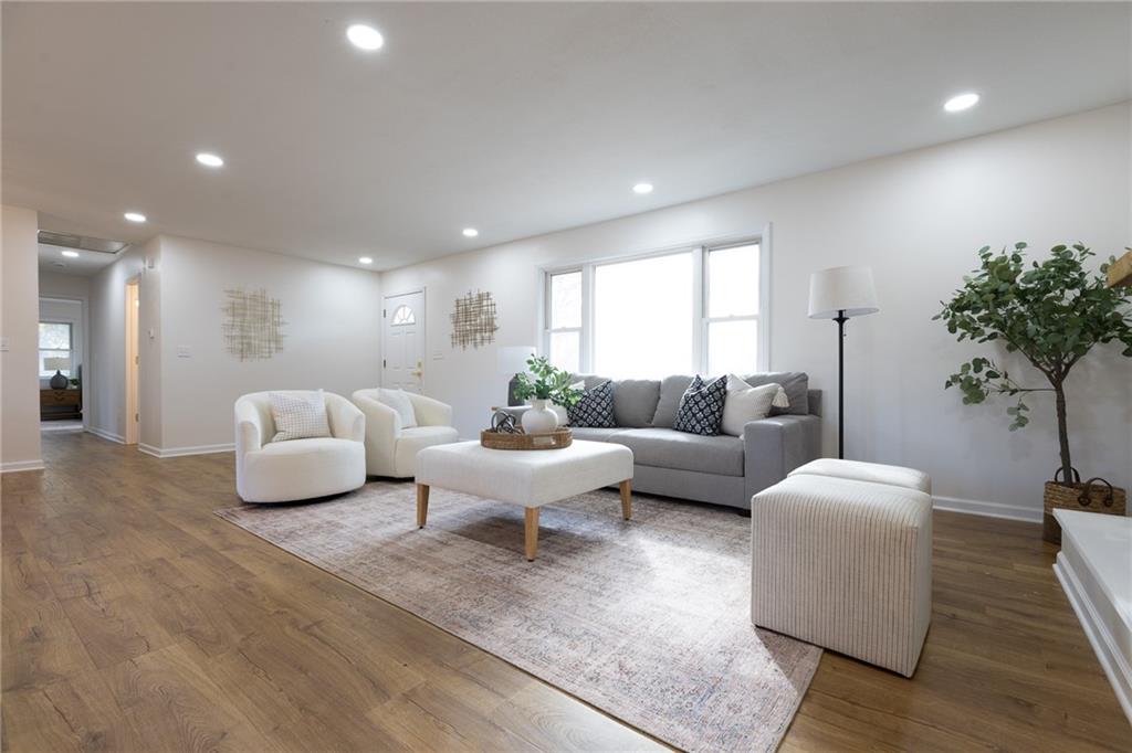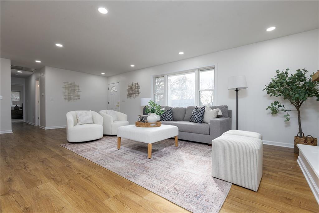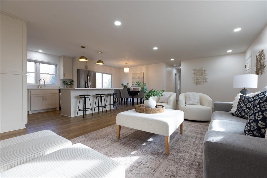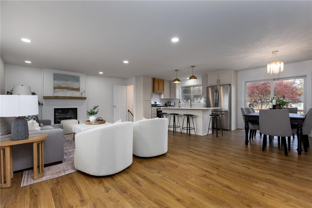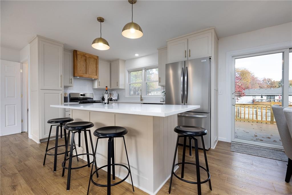 Shows great with all new!!! Spectacular home with new exterior & interior paint. Open plan with new electric fireplace in the Living room opening to the Spacious Kitchen and Breakfast Area. Quartz counters & Island. New Cabinets & drawers, sink, fixtures, appliances. 3 sizeable bedrooms on the main floor. New Hall Bath. New Primary Bedroom Bath. Full finished Rec Room. Huge deep Oversized 2 car side entry garage. Brand New 23x14 Deck overlooking the large privacy fenced back yard. New front deck/porch. Central air 3 Months, Furnace 5 years, Hot water heater 2 years. Nice quiet neighborhood with easy access to I-70 Hwy and shopping. This a beautiful newly refinshed home!