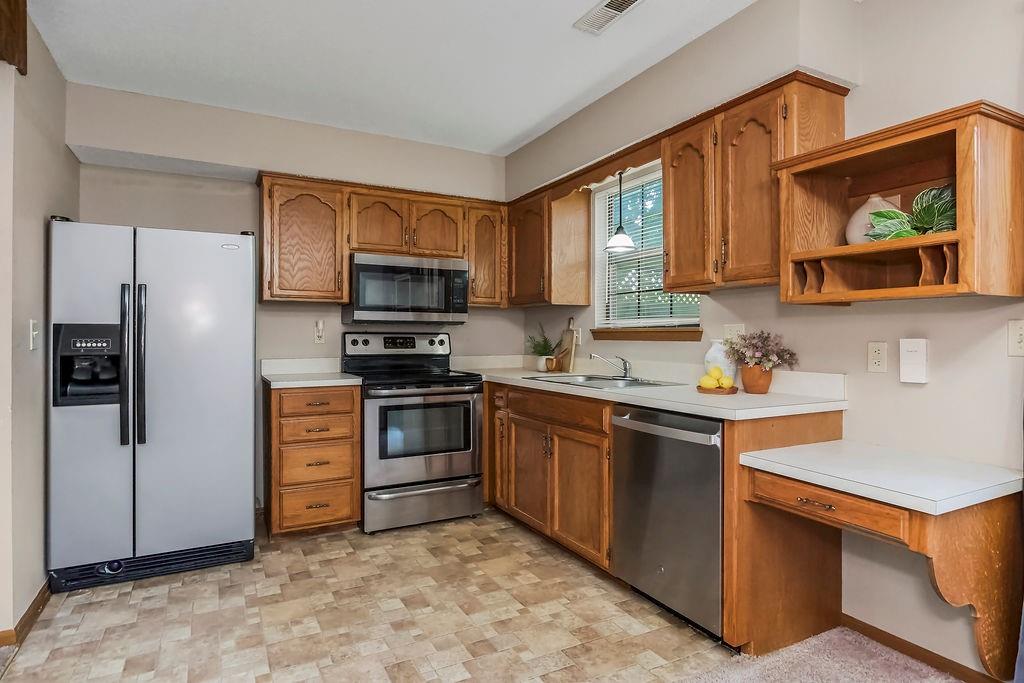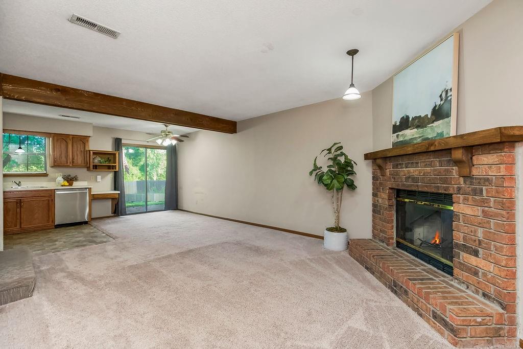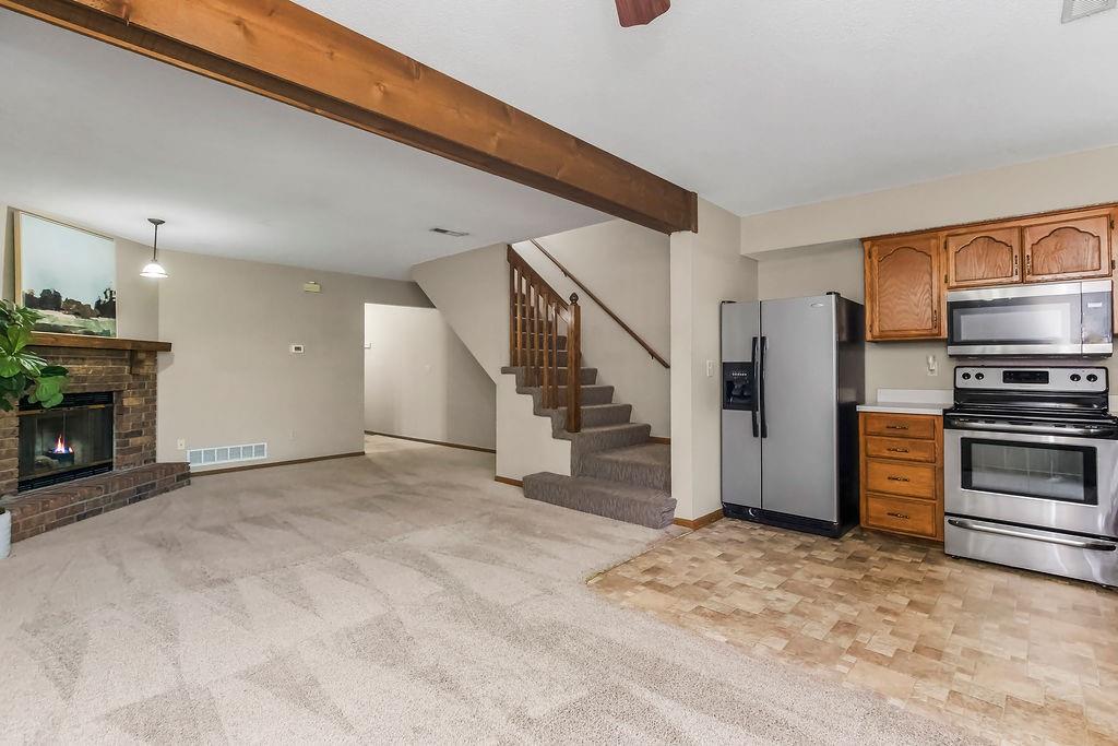Don’t miss your opportunity to own this beautiful townhouse in the heart of Lee’s Summit! Step inside to a welcoming living room with a cozy corner fireplace—perfect for relaxing evenings. The kitchen shines with sleek stainless steel appliances, generous cabinetry, and a bright breakfast nook that opens to the back patio. A convenient half bath completes the main level. Upstairs, you’ll find a spacious primary bedroom with vaulted ceilings and private access to the full hall bath, which offers a large vanity, linen closet, and shower/tub combo. Both bedrooms include ceiling fans, large closets, and window blinds for added comfort. Enjoy your own one-car garage and extended driveway, too! The HOA covers lawn care, trash, and exterior maintenance (studs out), while owners insure the interior. The roof is just five years old! All of this in a prime location—minutes from vibrant downtown Lee’s Summit with shopping, dining, and entertainment, plus quick highway access for commuters. Schedule your showing today!