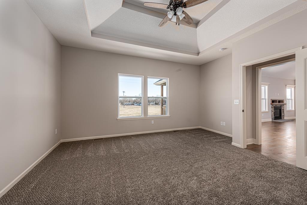 BRAND NEW 3-BEDROOM RANCH WITH OPEN FLOOR PLAN AND 3-CAR GARAGE! If you’ve been searching for a stylish new construction home that blends comfort, quality, and function, this one checks every box. The Daniel Plan features hardwood floors throughout the kitchen, dining, and living areas, creating a warm and inviting feel. The kitchen is designed for modern living with granite counters, a walk-in pantry, and an open flow to the huge great room with a cozy fireplace—perfect for entertaining or quiet nights in. The spacious master suite offers a large walk-in closet and a beautiful bath with a custom corner shower. The unfinished basement provides endless potential for future expansion—think rec room, gym, or extra bedrooms. Enjoy peaceful views, a covered patio, and plenty of yard space for outdoor fun. Photos are of a similar model; taxes and room sizes are estimated. Seller is a licensed real estate agent in Kansas and Missouri.