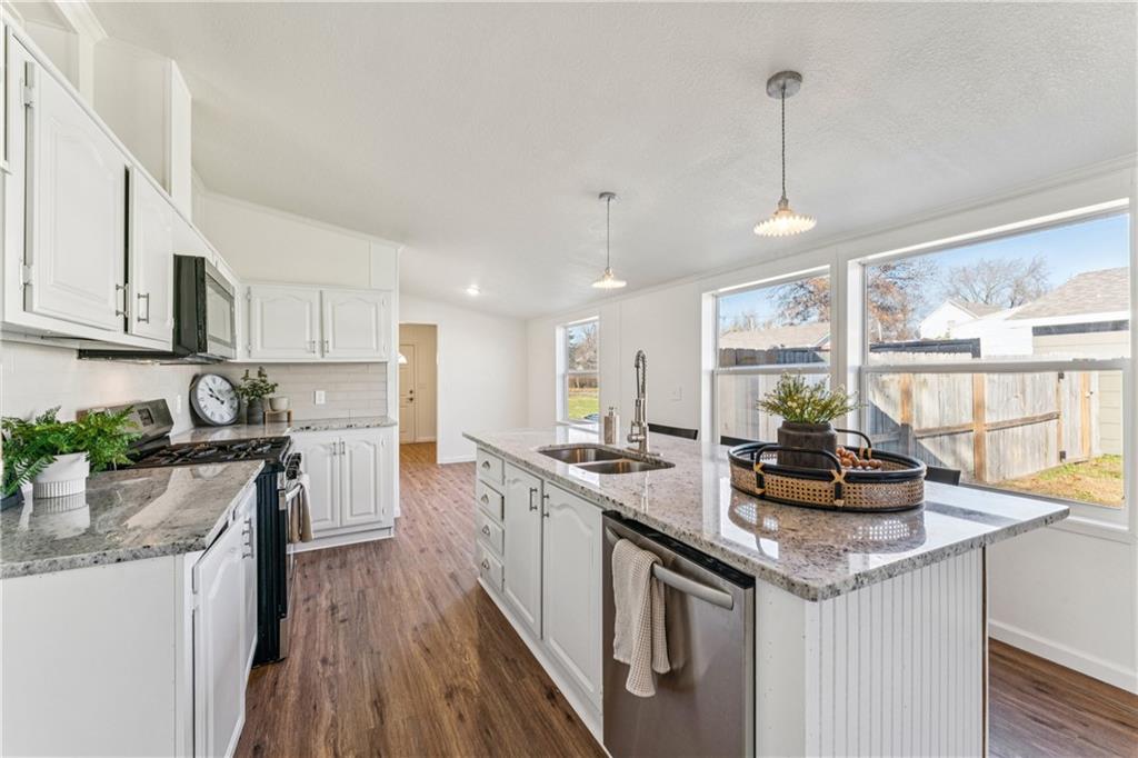 Welcome to this beautifully updated 5-bedroom, 2-bath home where modern comfort meets timeless character! Step inside to find fresh paint, new flooring, and stylish fixtures that create a bright, welcoming atmosphere throughout. The spacious kitchen features freshly painted cabinets, sleek countertops, and stainless steel appliances, the perfect blend of charm and functionality. The open-concept layout connects the kitchen, dining, and living spaces seamlessly, making it ideal for both everyday living and entertaining. Both bathrooms have been tastefully remodeled with contemporary finishes, while each bedroom offers ample space and natural light. Outside, enjoy a refreshed exterior with new landscaping and a generous backyard, perfect for relaxing or hosting guests. This move-in-ready home combines thoughtful updates with lasting quality, a must-see for anyone seeking space, style, and value!
