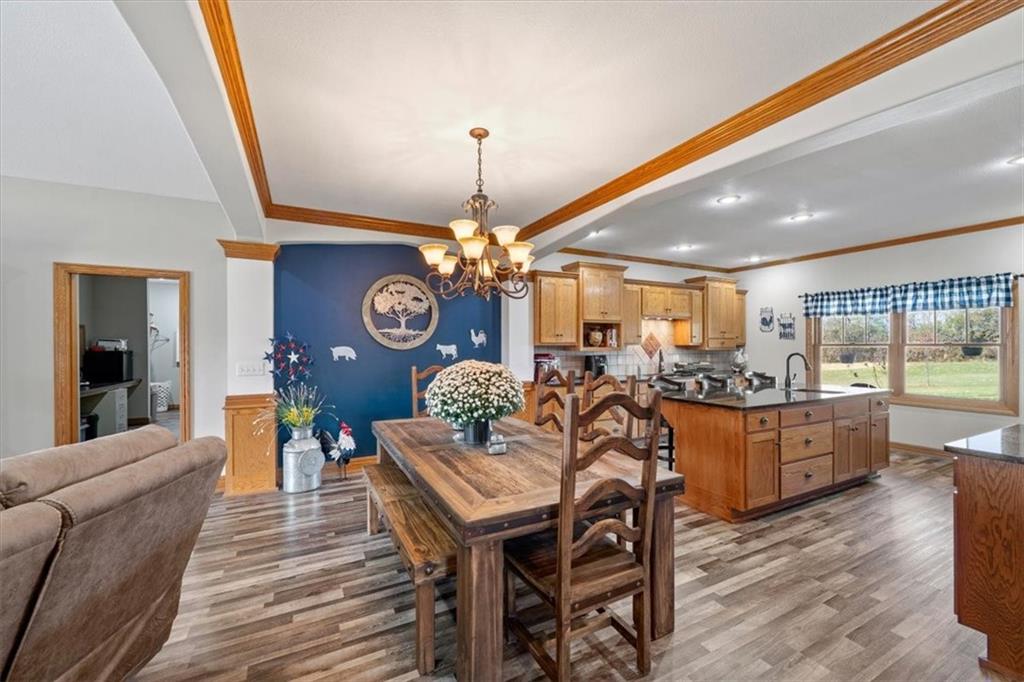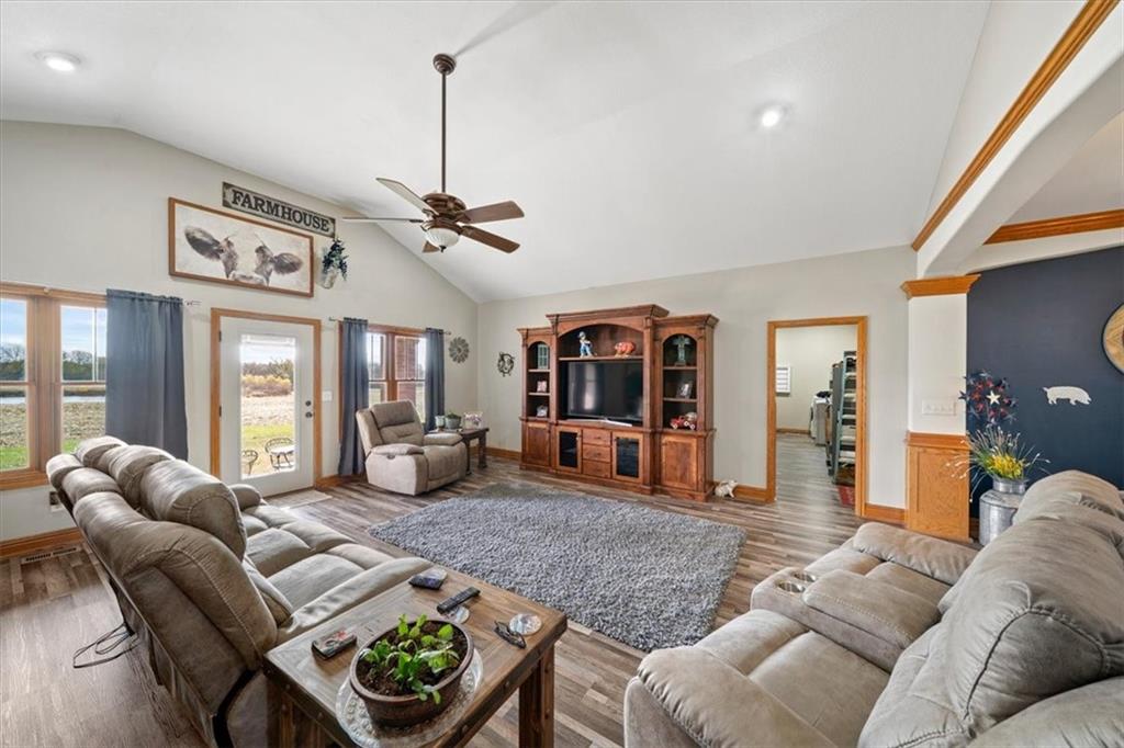 Your own private sanctuary on 20 Acres M/L—just off blacktop, surrounded by nature and peaceful privacy. The only neighbors you’ll see are deer, turkey, squirrels, and an abundance of wildlife. This thoughtfully designed open floor plan showcases excellent construction throughout, featuring a chef’s kitchen with top-of-the-line cabinetry, a massive center island, and generous workspace. Three bedrooms total, including a flexible room ideal for an office, hobby space, or guest suite. Enjoy true main-level living with wide, handicap-accessible doorways and comfort in every detail. 50x 30 and 25x26 Outbuildings ready for storage, hobby or raising livestock. Farm life, Refined.