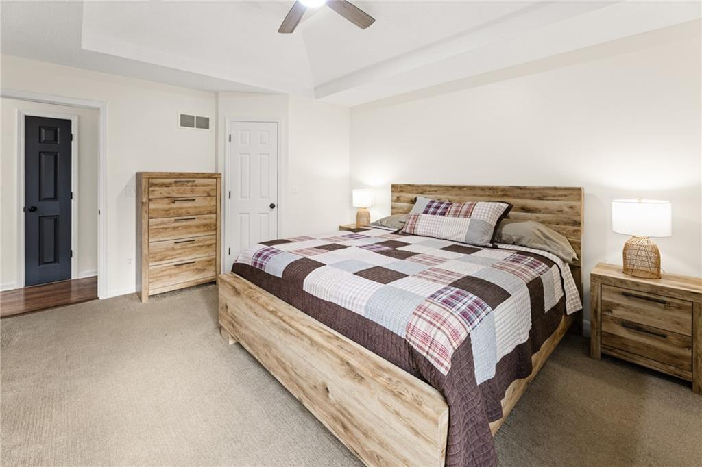 Welcome home to this beautifully updated property where comfort, style, and care are evident in every detail. Step inside and you’re greeted with fresh paint, modern touches, and a warm ambiance highlighted by the newly remodeled fireplace. The dining room features a stunning custom accent wall that instantly elevates the space. When you walk into the primary bedroom, you’re met with true luxury—two custom walk-in closets and a fully custom master bathroom designed for relaxation and convenience. Down the hall, two additional bedrooms feature brand-new carpet, while the kitchen shines with bamboo hardwood floors, quartz countertops, and a brand-new dishwasher. The upgrades continue throughout the home: laminated hardwood flooring in the hallway, barn doors in the laundry and basement, a smart thermostat, and thermal windows with one year warranty that fill the home with natural light. Head downstairs and enjoy the fully finished basement, plus a versatile sub-basement currently set up as a gym and cave room—perfect for hobbies, workouts, or extra storage. Step outside the home through French doors that lead to: a beautifully remodeled deck, a new shed, and a vibrant garden featuring four raised beds for fresh vegetables and fruit. Even the garage got a makeover with a epoxy floors, great during winter. This home blends thoughtful upgrades with charm and practicality—move-in ready, beautifully styled, and waiting to welcome its next owner.