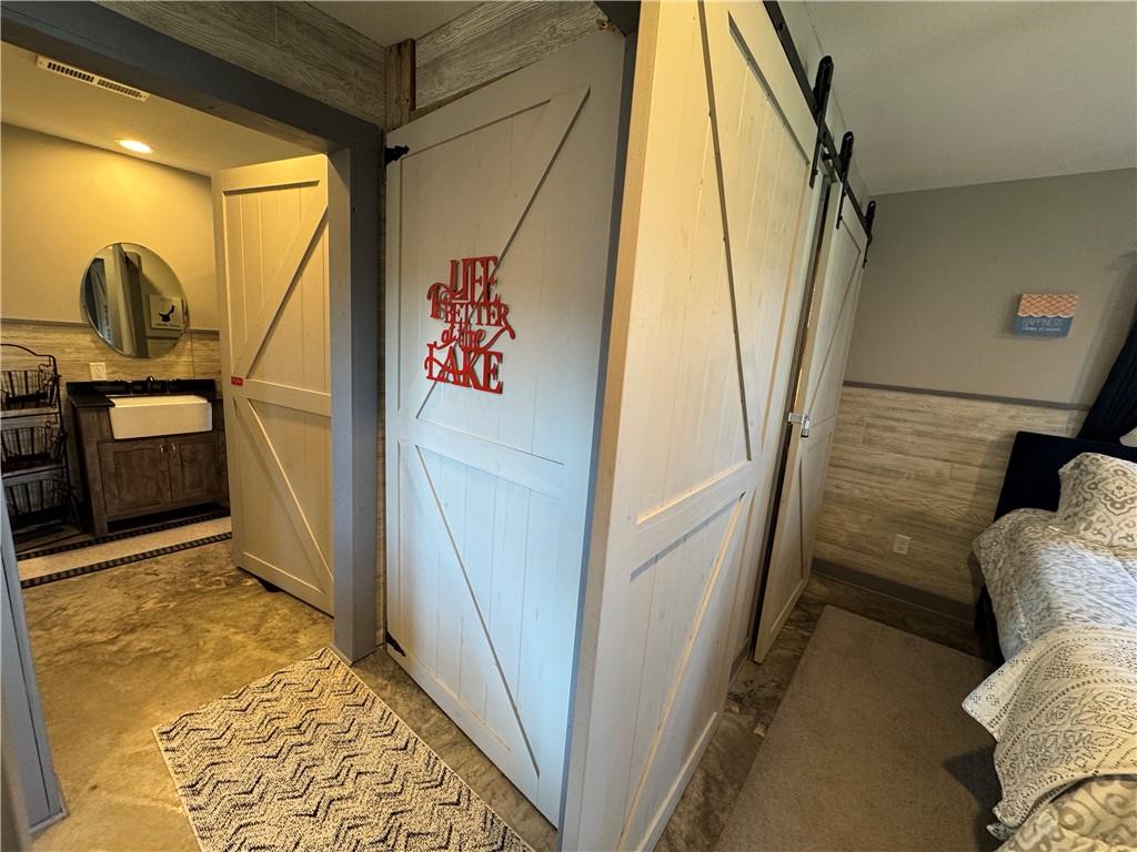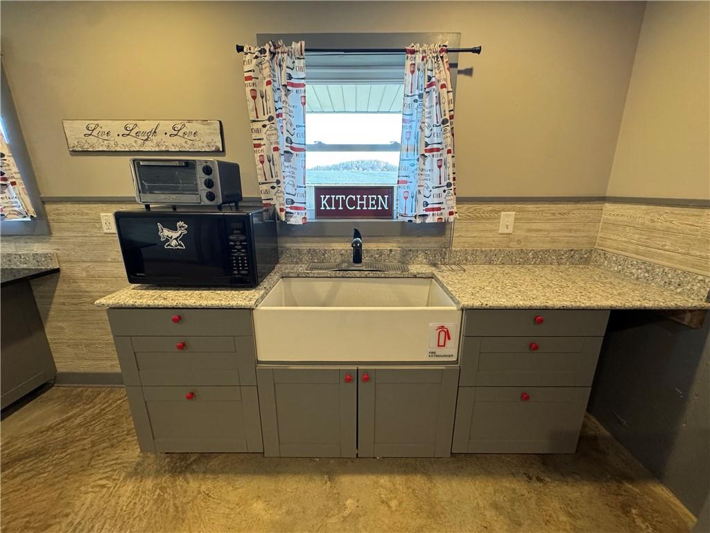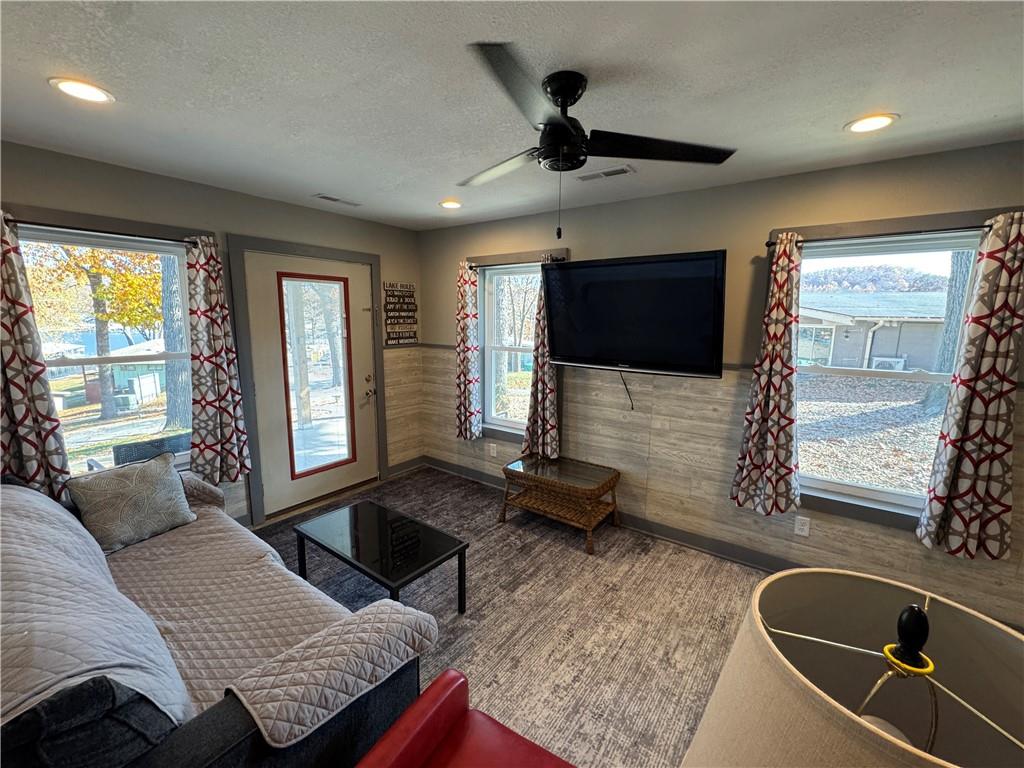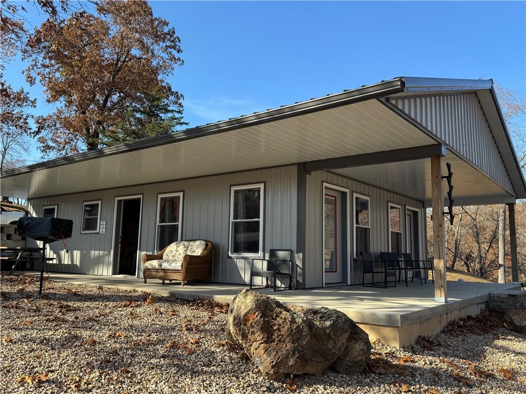 This adorable lake view cabin sits in the heart of Bass Point Resort on Lake of the Ozarks, offering just under 1000 square feet and two full bedrooms that easily accommodate queen beds. Most furnishings stay, making this the perfect low-effort personal getaway or ready-to-launch short term rental. The home features durable metal siding and a metal roof for easy maintenance, south and east facing porches for morning and afternoon sunrise & sunset lounging along with two jet ski ramps with direct lake access. Inside the full kitchen provides plenty of room for cooking as well as entertaining. You’ll find a large full bathroom with double sinks and a walk-in shower with a rain head shower head, plus bonus washer and dryer hookups located in the kitchen. (Washers & dryers available in the club house just across the street) Short term rentals are allowed nightly, weekly or monthly from April 1st through October 31st, making this a strong seasonal investment property. Bass Point Resort amenities are a major highlight and include three pools with an indoor and outdoor pools a kiddie pool, a covered fishing dock, a swim dock, boat slips up to thirty feet with electric, kayak and paddleboard rentals, a full tennis court striped for four pickleball courts, disc golf, horseshoes, playground, community fire pits and a large event space known as the Commodore Room with a full kitchen and bar. Boat docs can be rented for $18/night or purchased. The entire resort has free WiFi, and cable is available in every cabin. This practically new cabin gives you stunning lake views, solid rental potential and full access to one of the most amenity packed resorts on the lake. Perfect for anyone wanting a turnkey personal escape or an income producing seasonal rental. Don't miss your chance to live your best LAKE LIFE!!