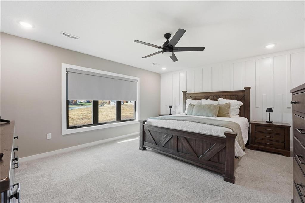 Exquisite Two-Story Home with Water Views in Warrensburg Discover a rare blend of modern luxury and natural beauty in this stunning two-story home overlooking a peaceful pond/lake where blue herons and even bald eagles are known to visit. With its striking stucco front and hardie board-style siding, this home delivers impressive curb appeal from the moment you arrive. It is so larger than it looks! Step inside and be greeted by soaring ceilings, abundant natural light, and expansive custom windows that showcase the serene lake views. The grand staircase makes a statement of its own—graceful, open, and truly fit for royalty. The heart of the home is the chef’s kitchen, designed for those who love to cook and entertain. Featuring quartz countertops, painted walnut cabinetry, a large center island, and a butler’s pantry, this kitchen offers both elegance and functionality. The open-concept living area flows seamlessly, highlighted by a modern linear electric fireplace and stylish white walls accented with black hardware for that clean, contemporary look. Upstairs, enjoy spacious bedrooms with large closets and an enormous walk-in primary closet that feels like a boutique. The large laundry room and built-in drop zone/mudroom bench add everyday convenience and thoughtful design touches. Step outdoors to a flat, black-fenced backyard and enjoy evenings under the open sky, or sip your morning coffee from the covered front porch as you watch the sun shimmer across the lake. The home also features custom-fitted smart blinds and in-ground lawn irrigation for effortless maintenance. This home is not your typical cookie-cutter design—it’s a statement of taste and individuality, where every detail has been carefully curated for comfort and style.