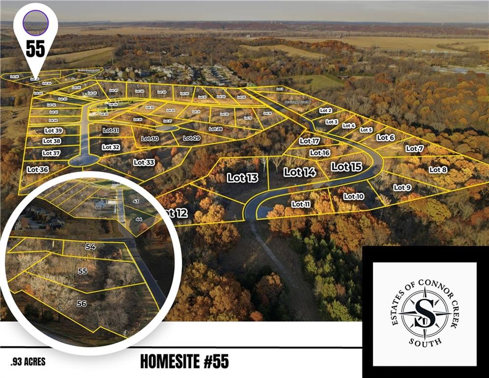 1 ACRE HOME SITE #55 IS READY FOR YOU TO BUILD BY THE LEGENDS = Where Luxury Breathes & Dreams Break Ground! Discover a place where the horizon stretches wider, the air feels lighter & the promise of your future home begins long before the foundation is poured. On the edge of Kansas City, this new community is “set apart” featuring a rare collection of homesites that have been carved into the rolling landscape just beyond the Legends in Kansas City! You will find a mix of sprawling acreage estate lots that invite you to design a residence worthy of your dreams. Each homesite perched above sweeping views, surrounded by mature trees, open skies & the quiet rhythm of nature—set along winding paved streets with curbs, gutters + city sewer! Where countryside serenity meets effortless access in the award-winning Piper School District. A premier location, 20 min from KCI International Airport, the historic charm of Weston, the riverfront elegance of Parkville, the vibrant culture of Lawrence & the stability of Fort Leavenworth. You’re also around the corner from The Legends premier shopping, elite dining and sporting events and venues, endless entertainment. Championship golf courses, natural sanctuary of WYCO Lake w/ chart-topping musical performances at an amphitheater. Here, convenience is always within reach—yet life feels wonderfully private. Existing Amenities help set the tone for elevated living w/o the wait. Those seeking guidance. Our ONSITE preferred custom builder stands READY to collaborate OR help you find the right builder & turn your dreams into reality! This is not simply a place to build a home, it is the beginning of your story. Take a scenic drive to this EXCLUSIVE collection of just 56 beautiful homesites, each tucked into the reserved hills of this BRAND-NEW community, where your estate begins with a dream & rises into a life lived beautifully in the heart of Kansas City!